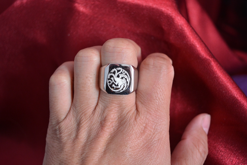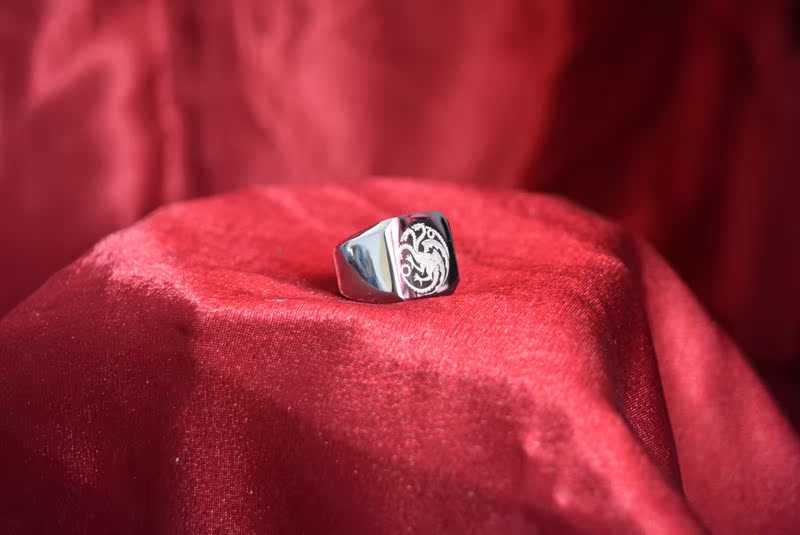 简约图案双头恐龙原色不锈钢指环激光雕刻保色打磨光滑钛钢戒指