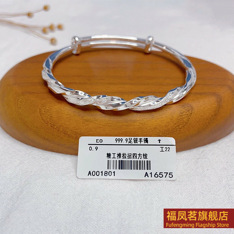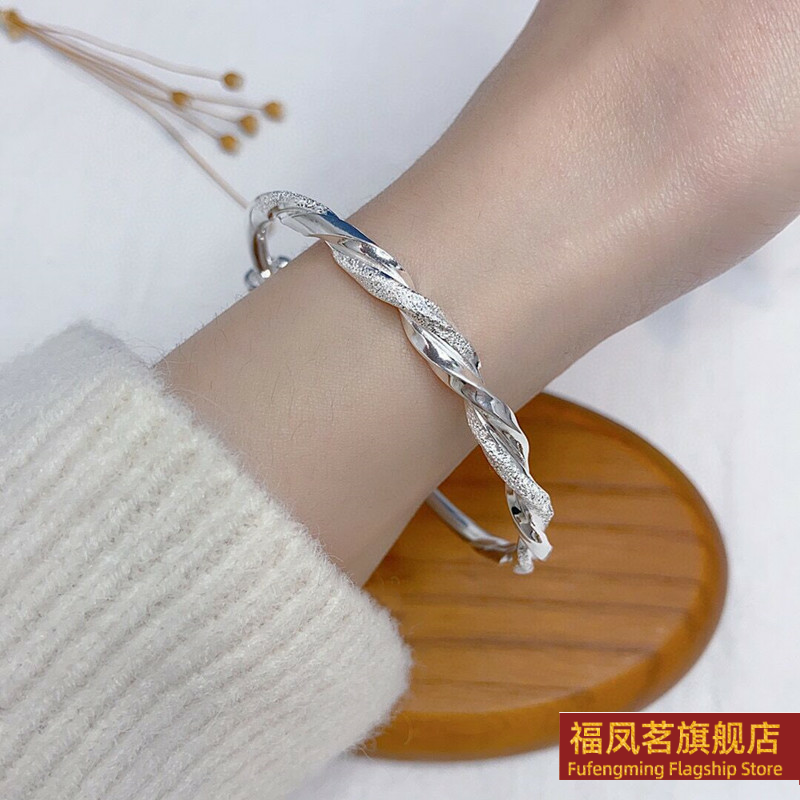 正生莫比乌斯环扭纹纯银手镯足银9999礼物银饰品送女友生日礼物