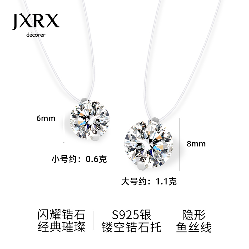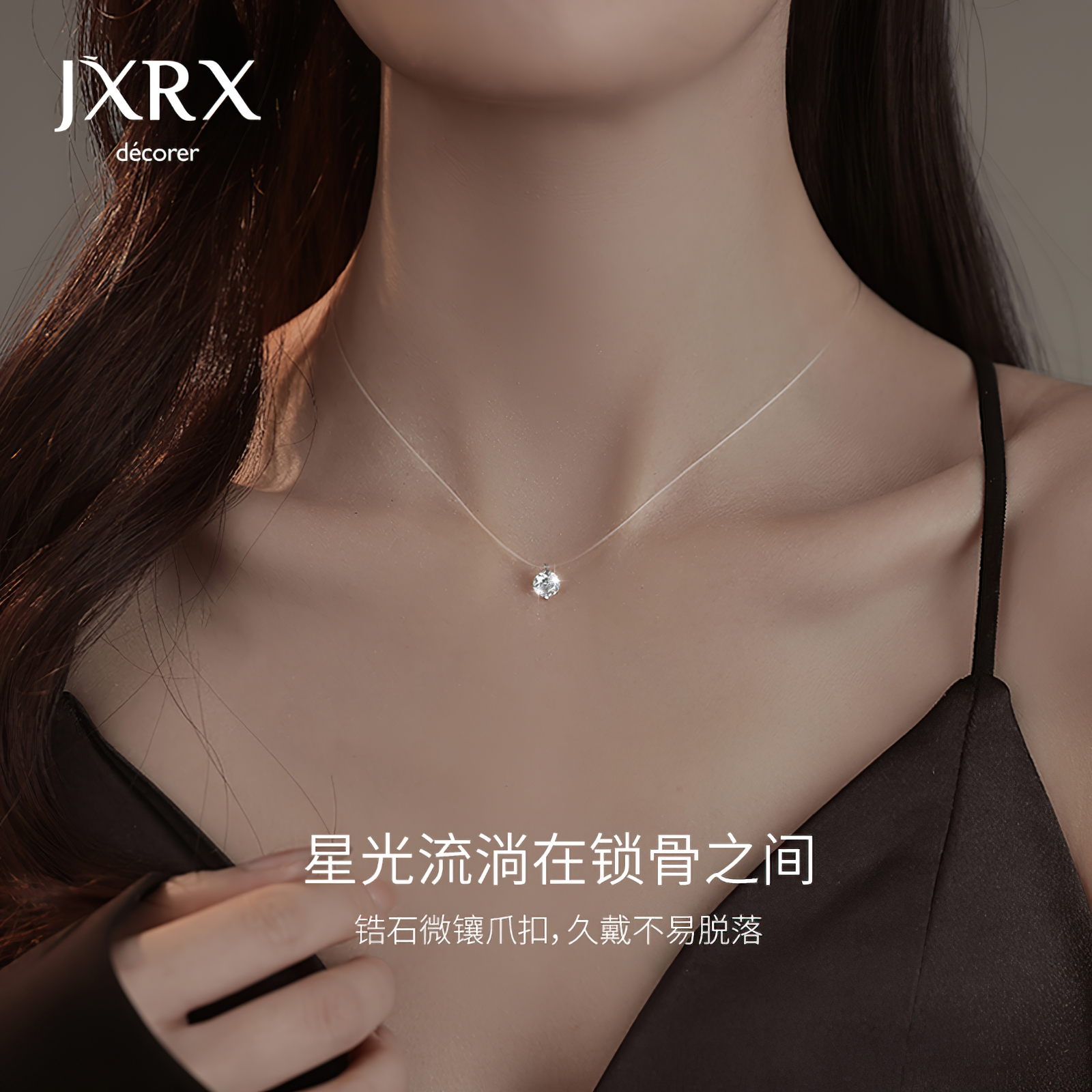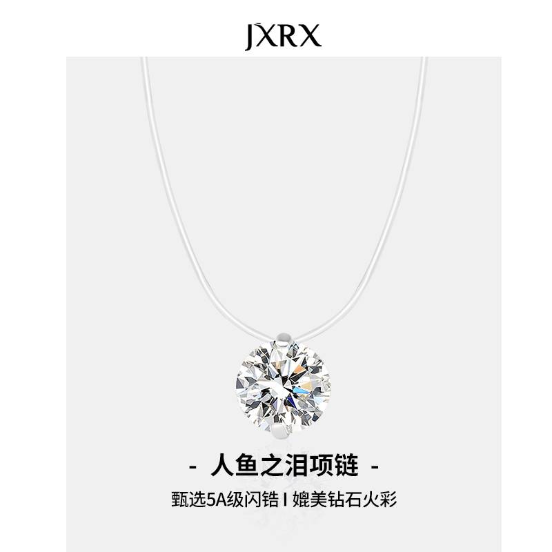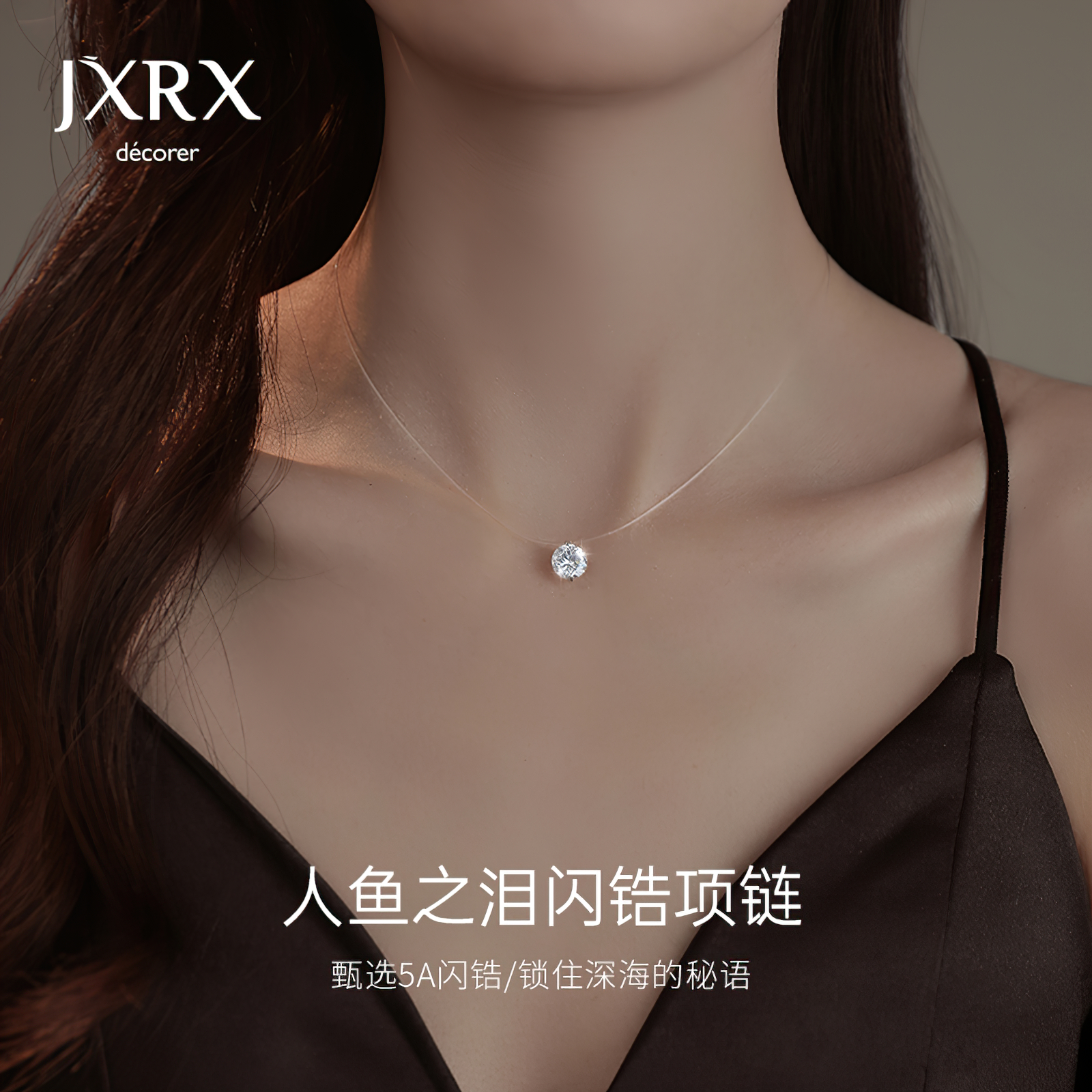 s925纯银人鱼之泪项链女2025新款超闪锆石吊坠透明鱼线颈链锁骨链