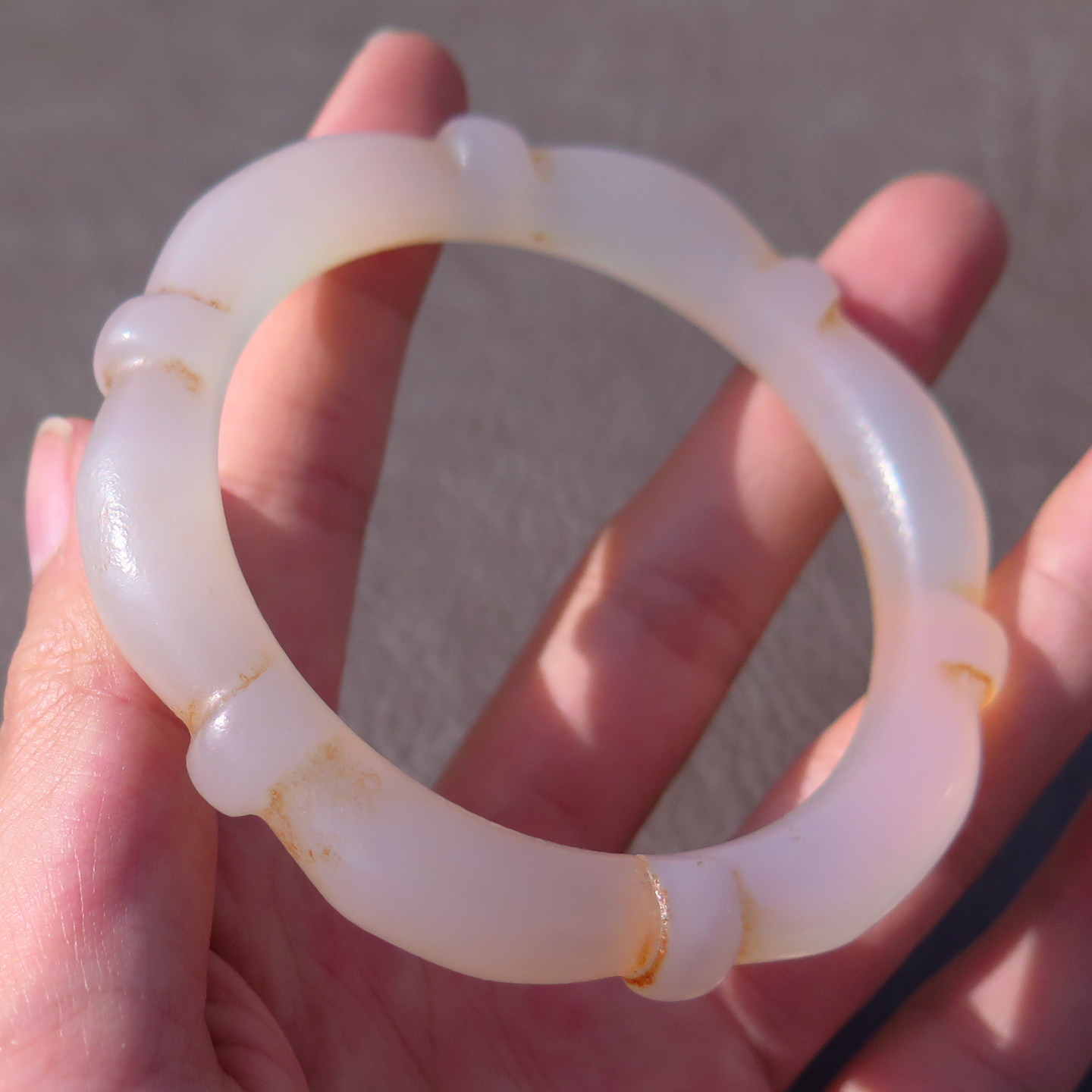精品岁月痕迹民族风仿古磨砂辽金白玛瑙圆条包浆风化61竹节手镯X5