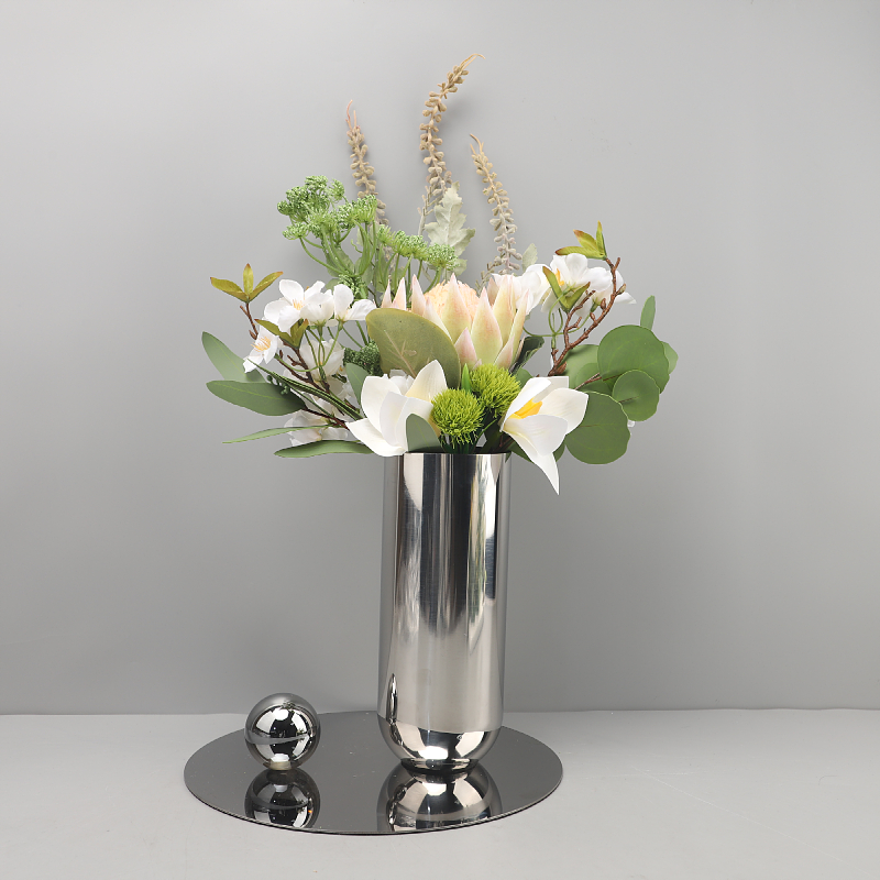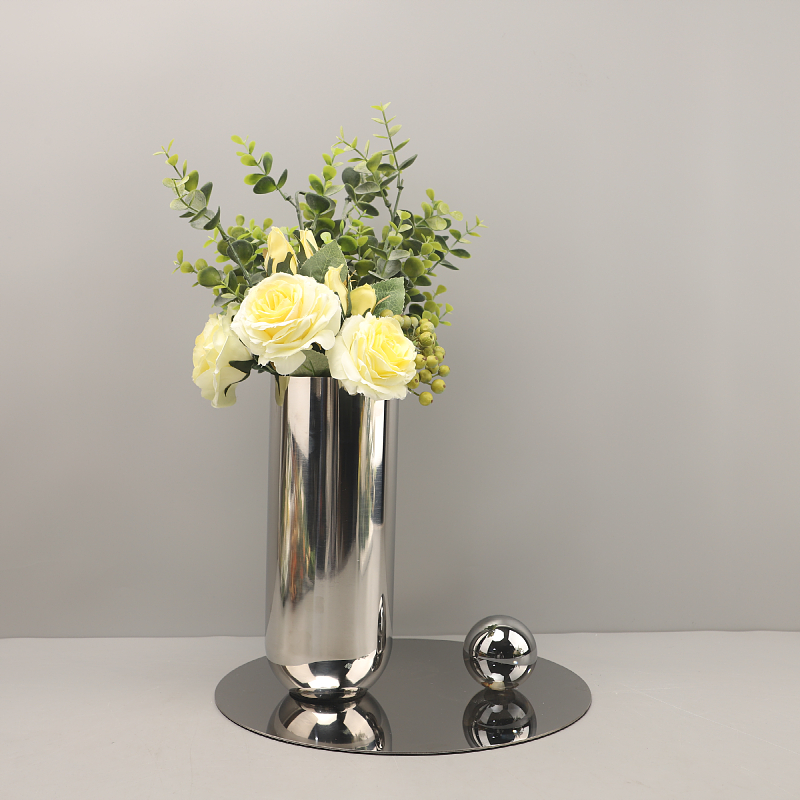 现代不锈钢花瓶摆件客厅插花饰品酒店样板间家居玄关餐厅桌面软装