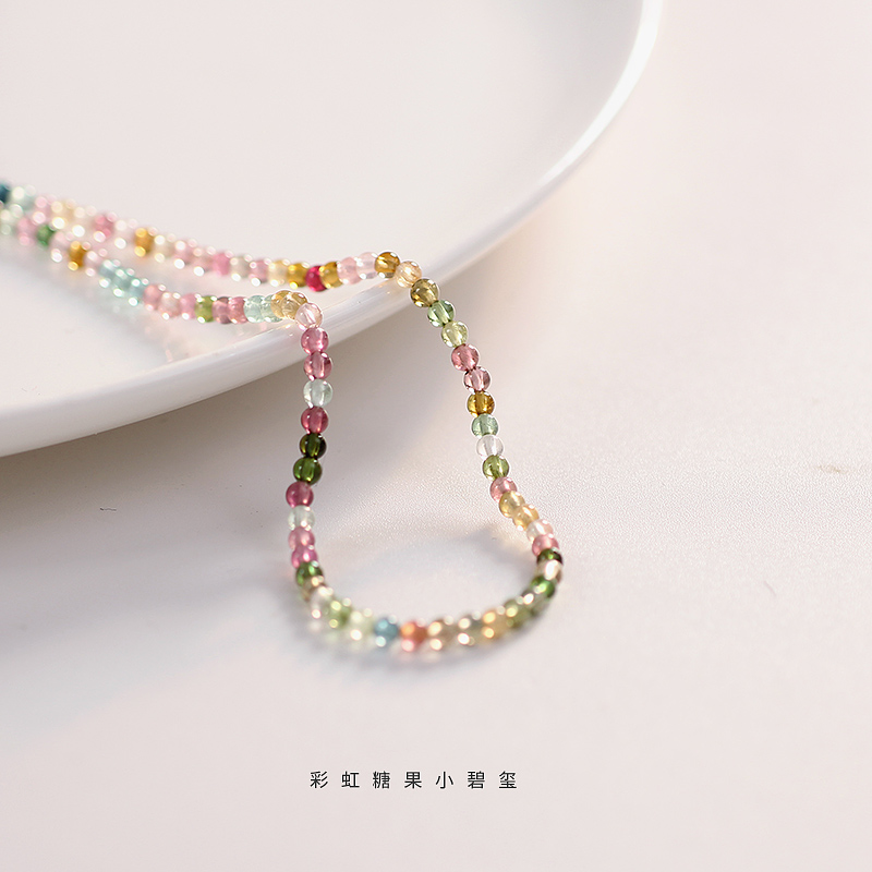 网红彩虹天然小碧玺项链女小众轻奢颈链小米珠轻奢气质精致锁骨链