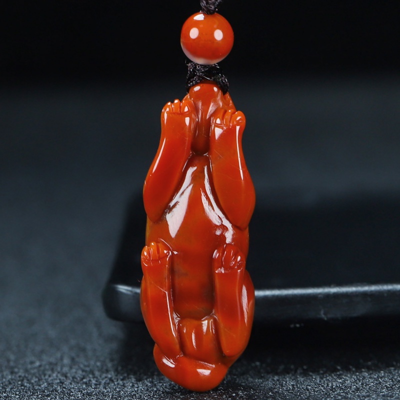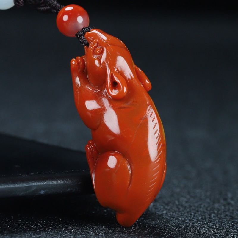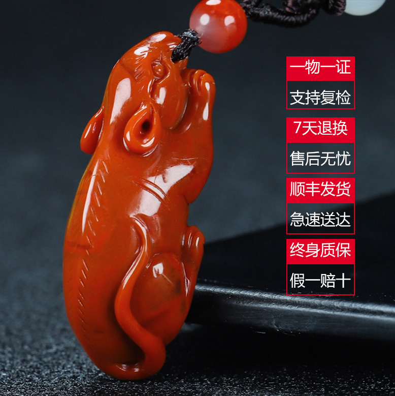 天然凉山保山南红玛瑙吊坠柿子红生肖鼠原石挂件男女款儿童款10号