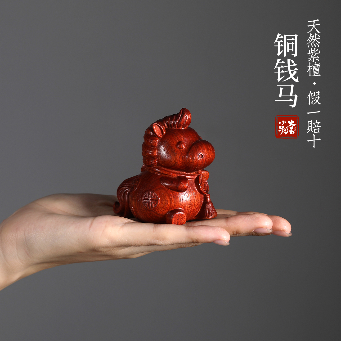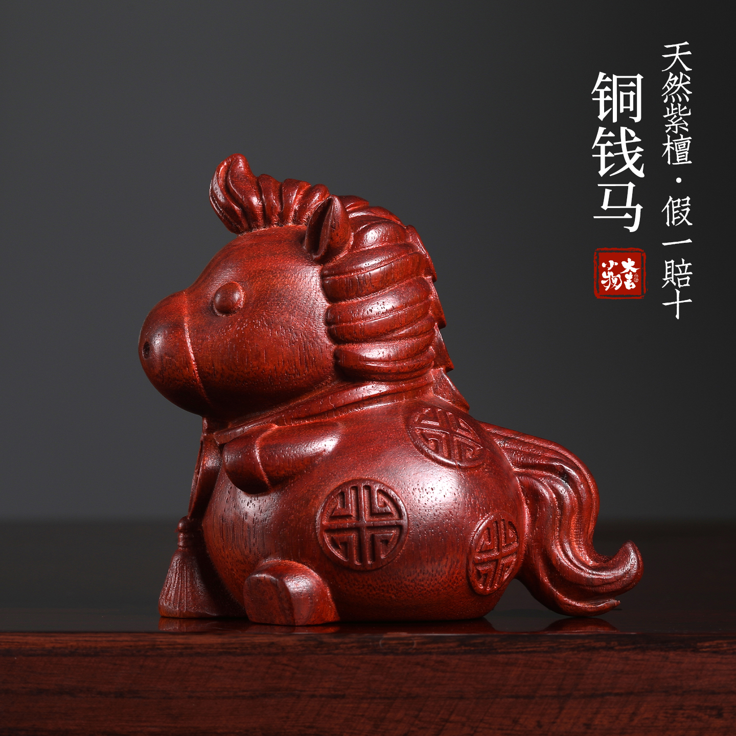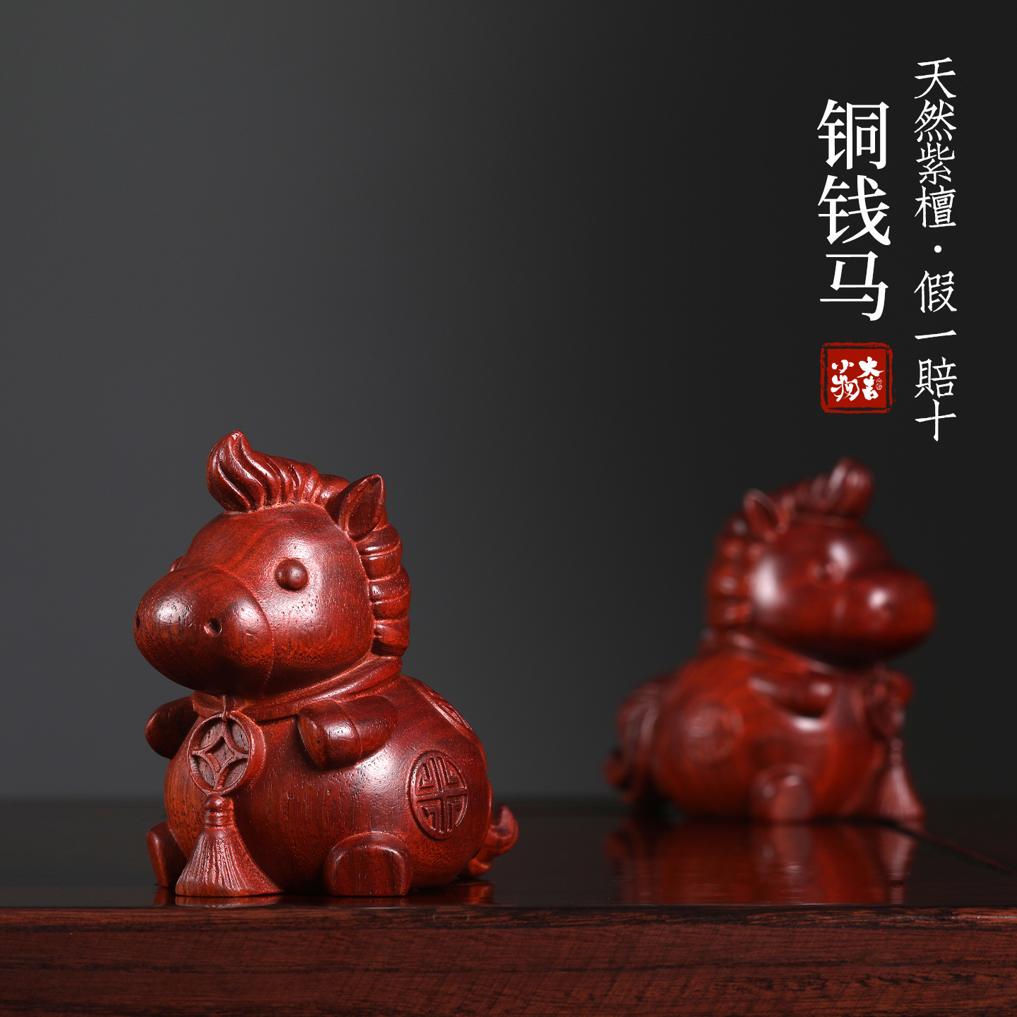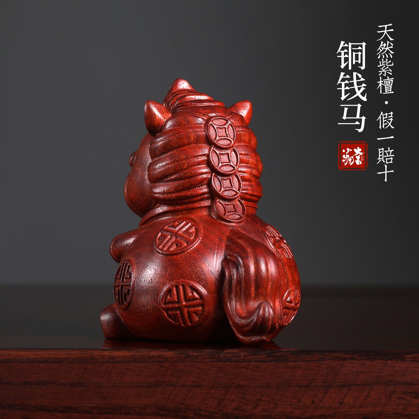 大吉小物新款铜钱马紫檀木雕刻摆件手把件客厅书房桌面装饰品