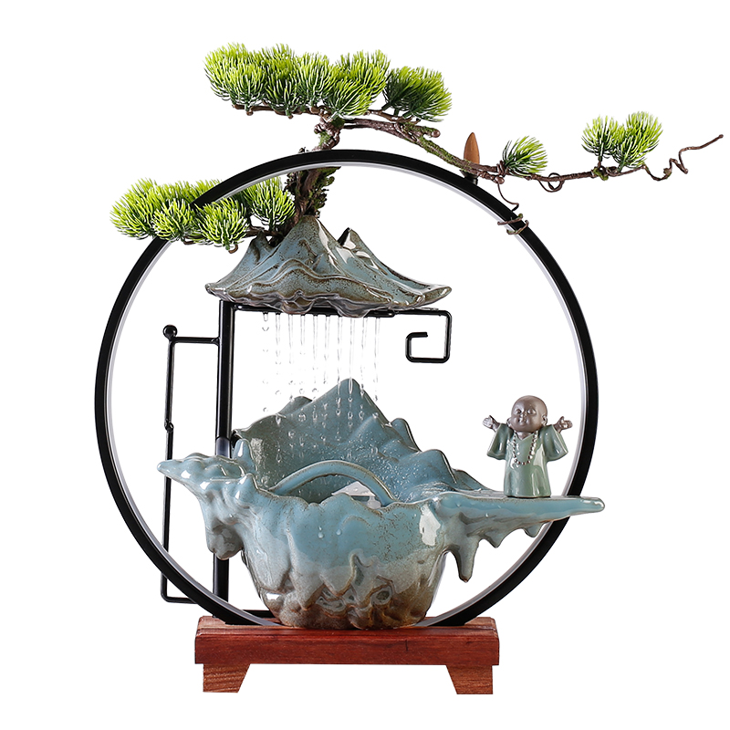 中式招财流d水办公室装饰摆件创意家居玄关客厅雾化加湿器开业礼