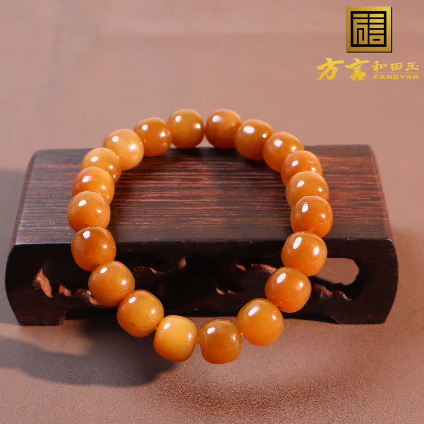 精品方言和田玉珍藏级新疆高油糯且末料糖玉10mm老型珠手串手链A2