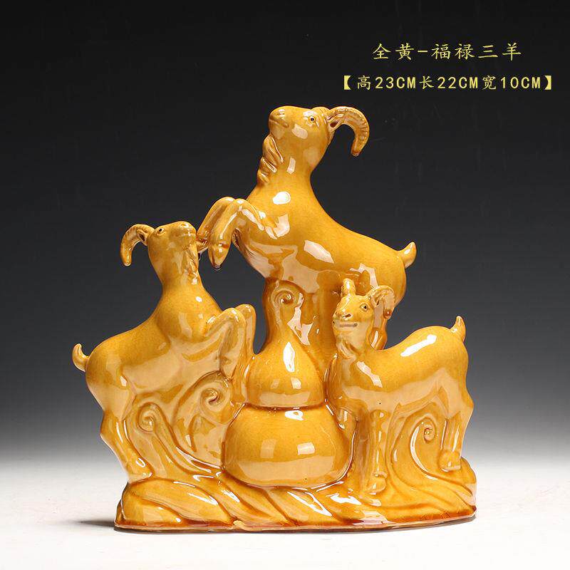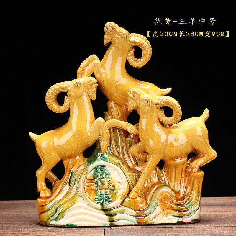 西南缺角黄色的陶瓷的三羊开泰三阳开泰生肖羊招财除四害摆件补角