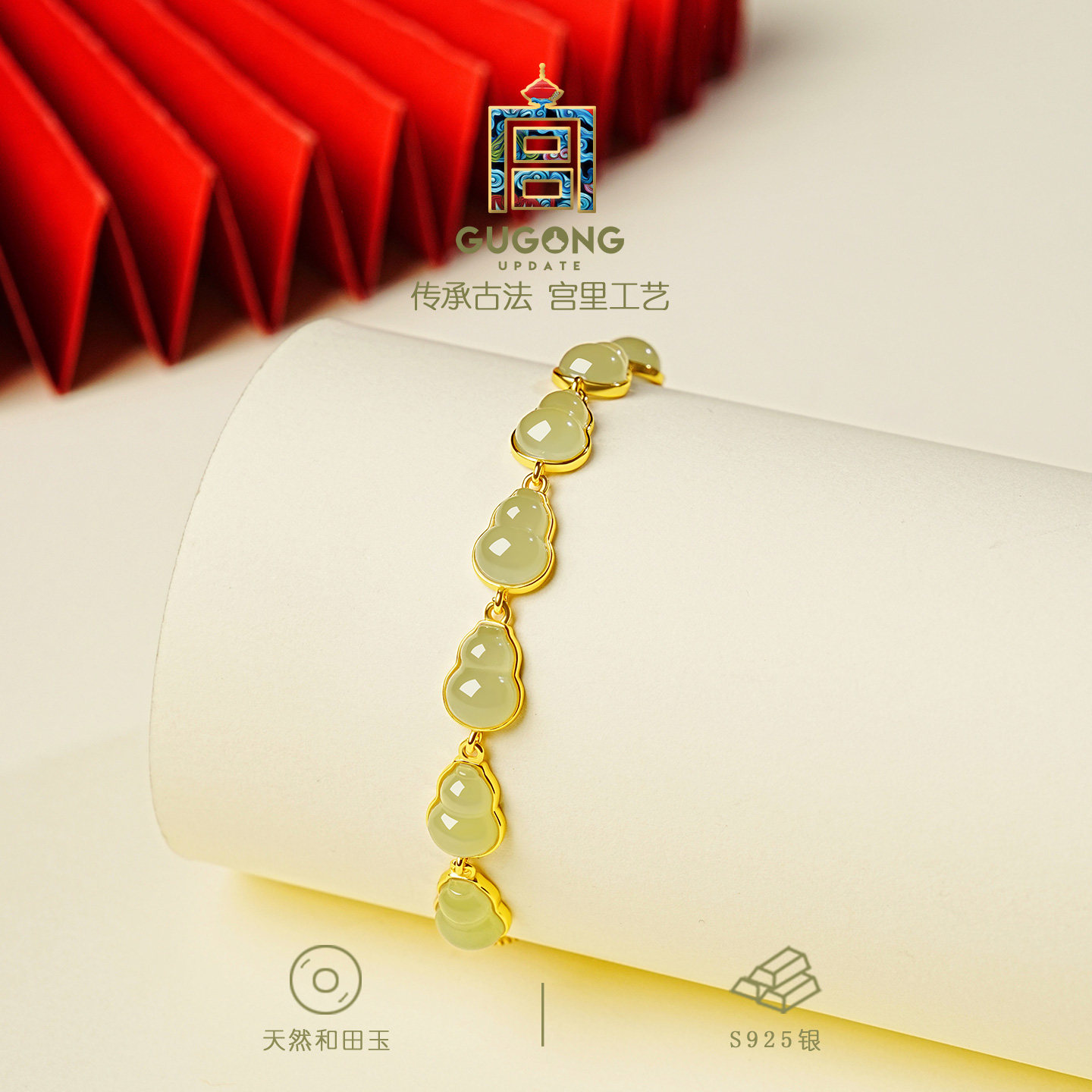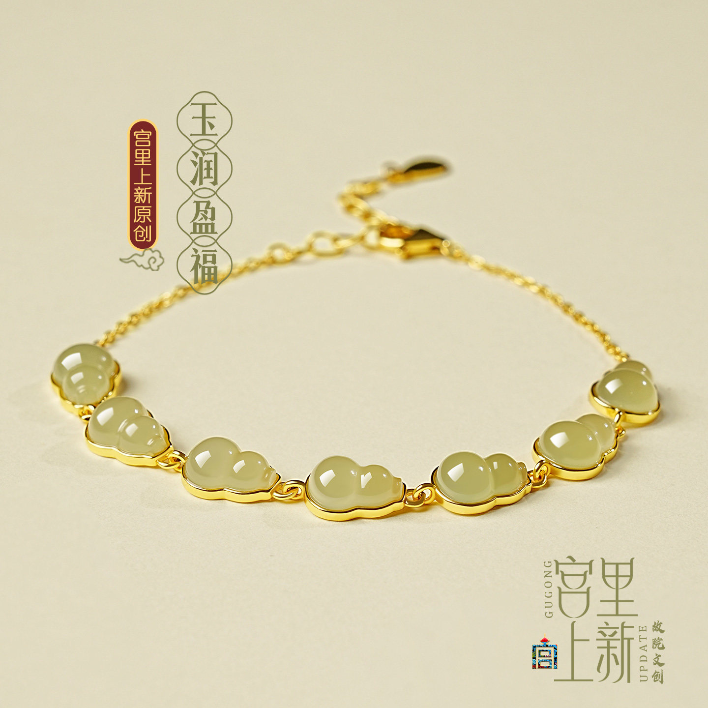 宫里上新和田玉手链女纯银葫芦轻奢高级感玉石手饰生日礼物送妈妈