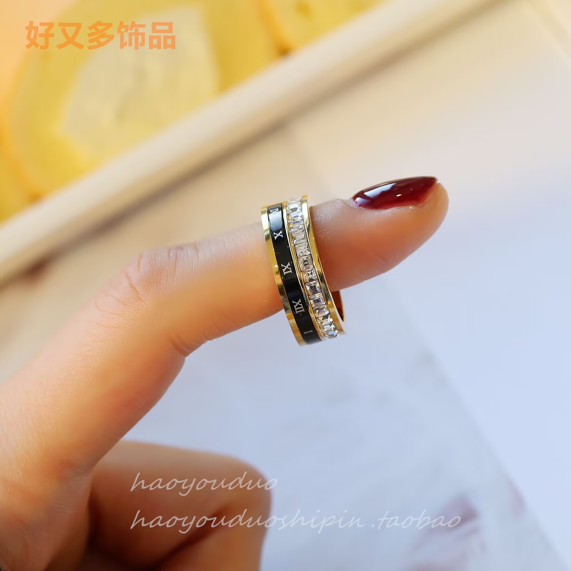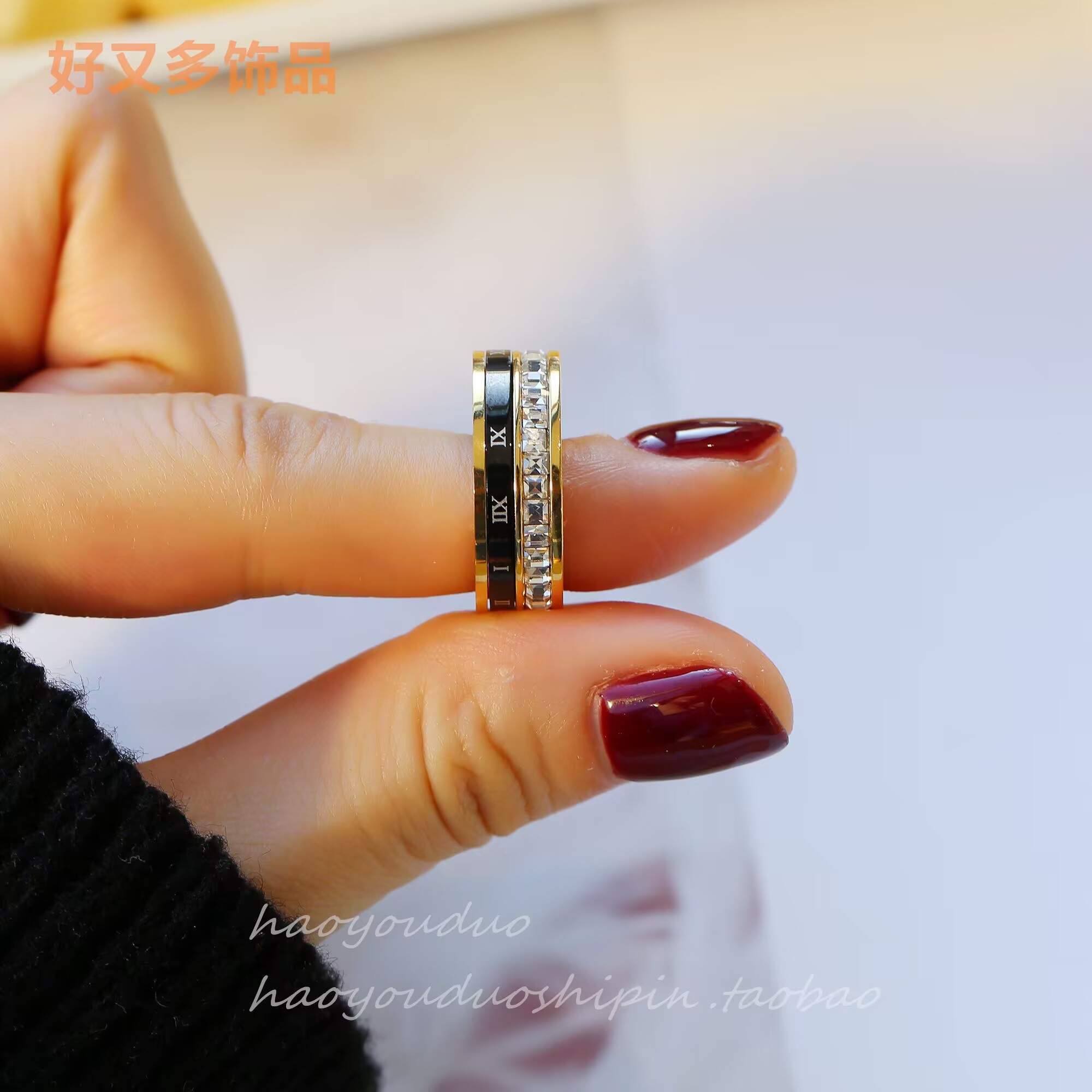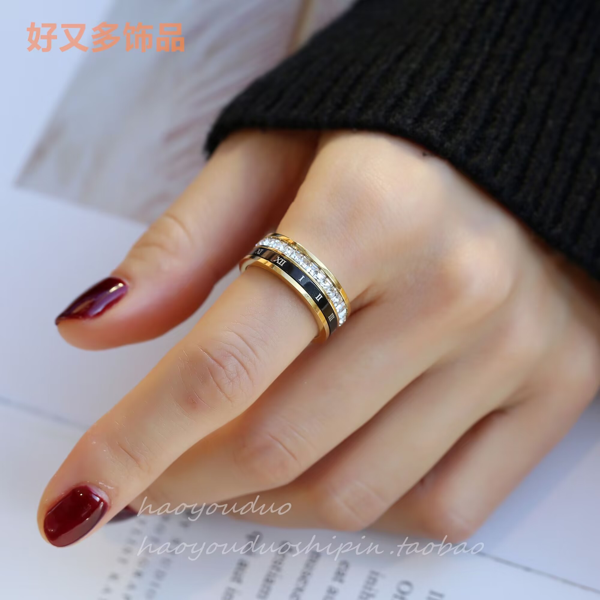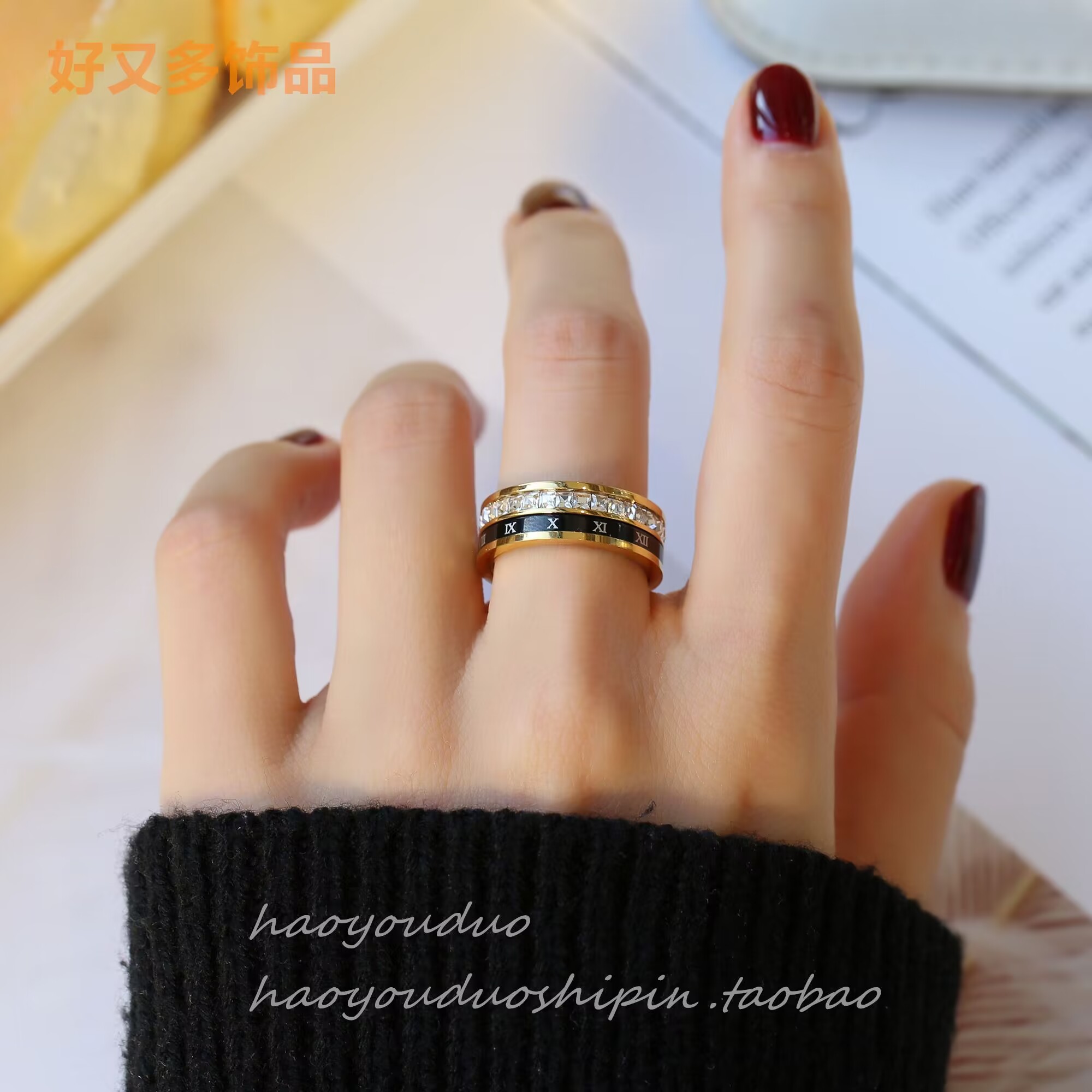 轻奢高级时尚设计感个性罗马数字黑色可转动方诰戒指精致百搭指环