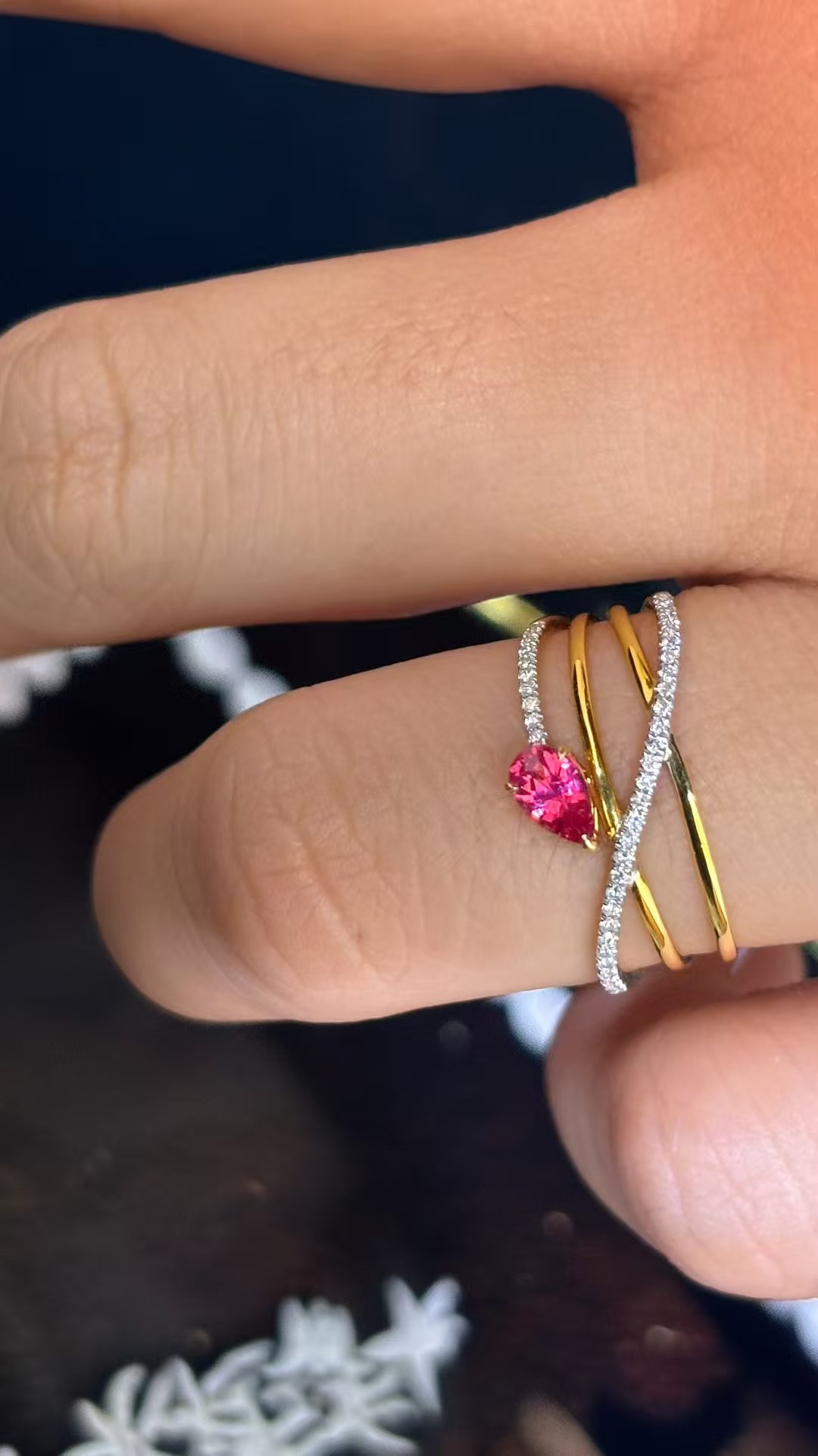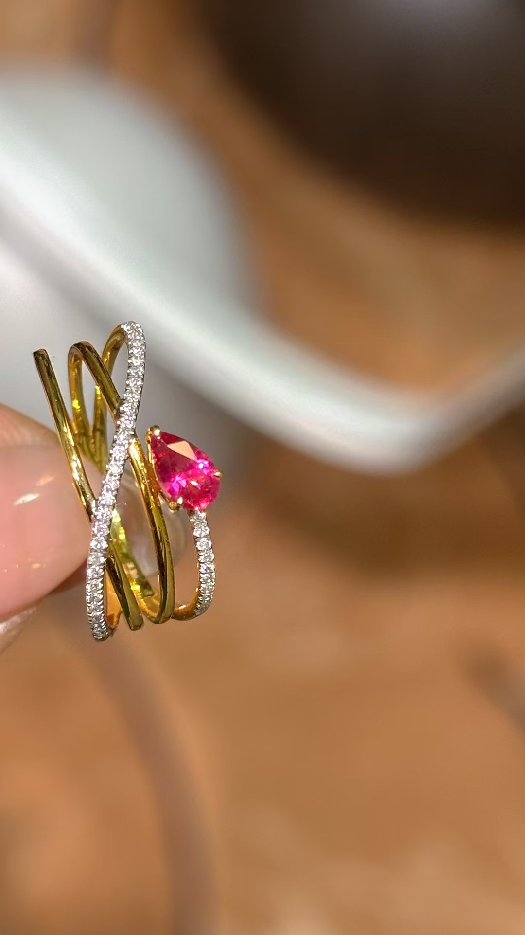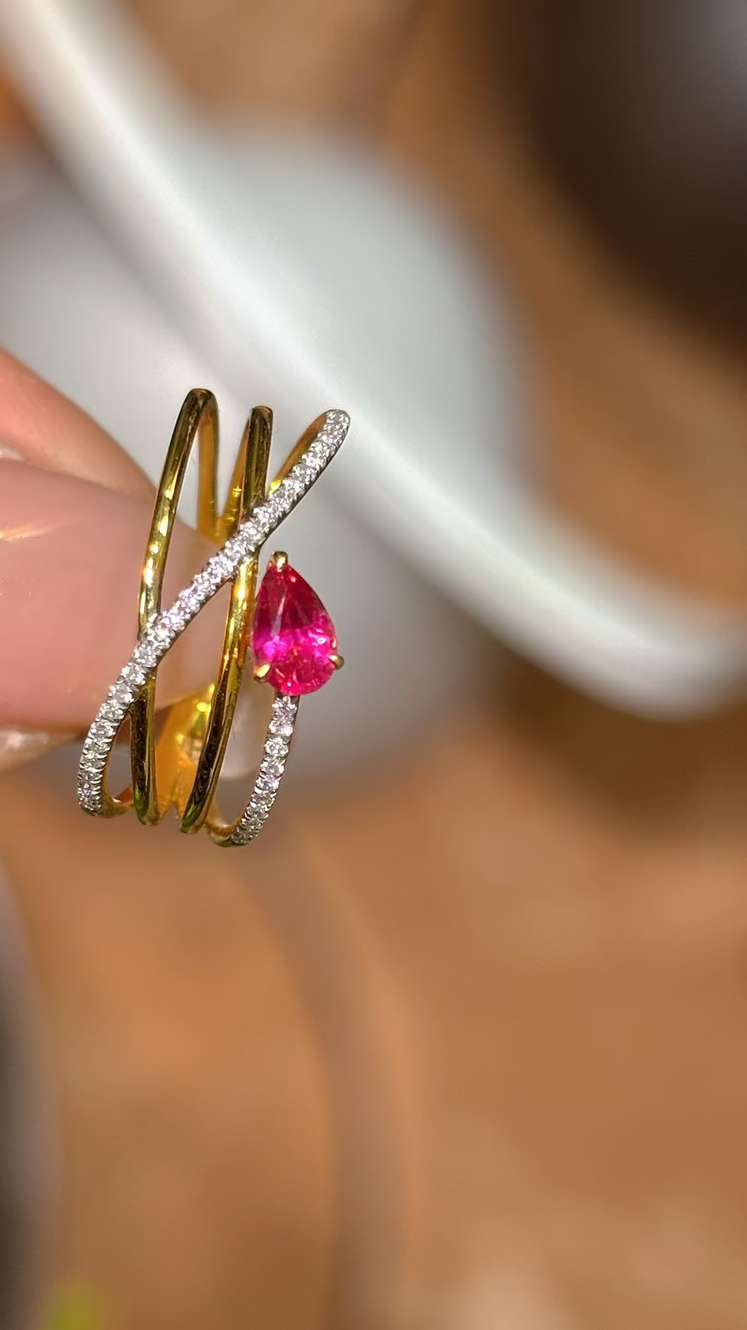 无烧尖晶石戒指莲花色0.3克拉主石,配国际证书!18K金钻石豪镶