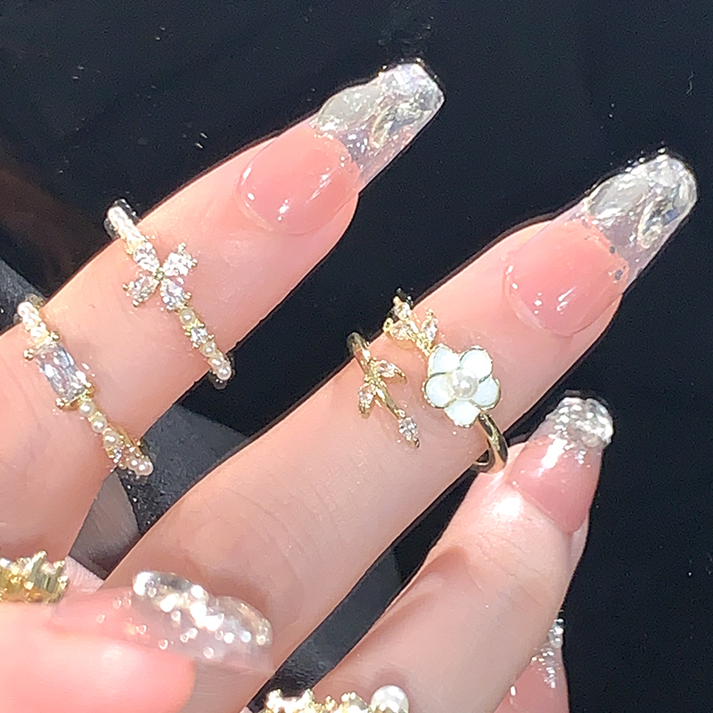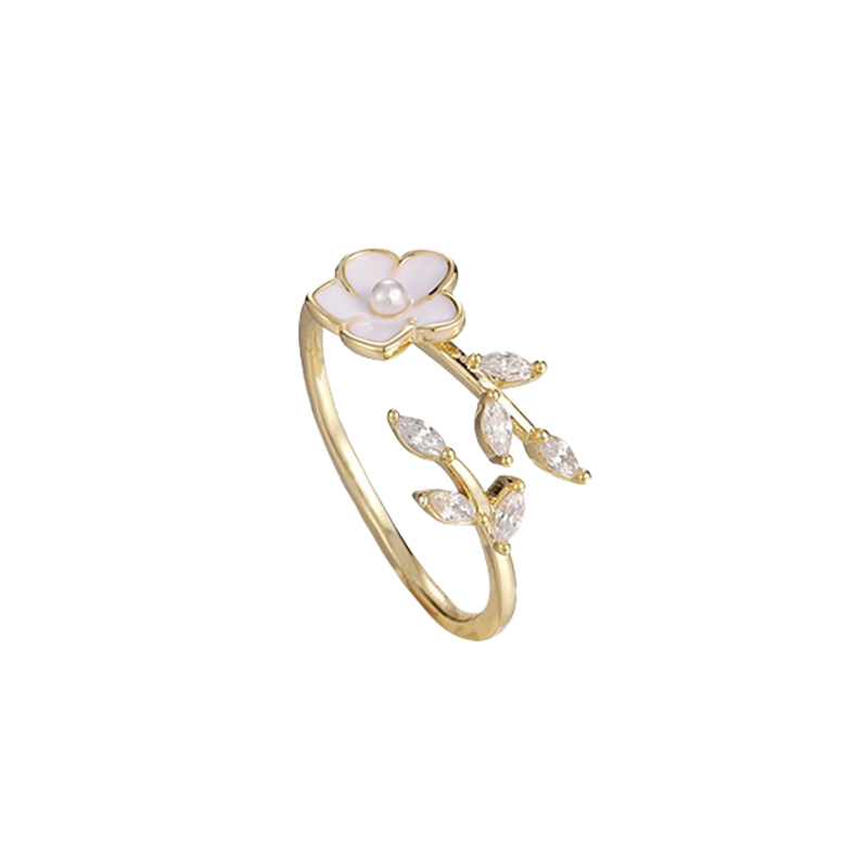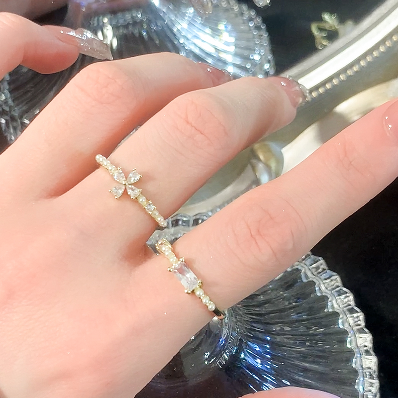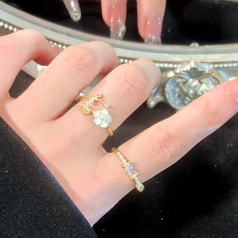 锆石珍珠戒指女小众设计高级感山茶花食指戒指女时尚个性尾戒指环