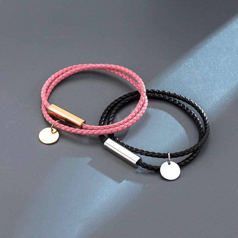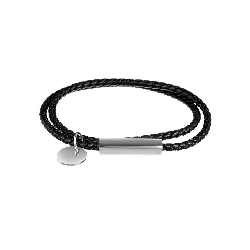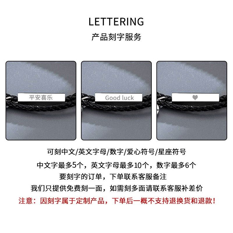 手链男款高级感黑色编织手绳可穿珠皮质手环定制刻字情侣手链礼物