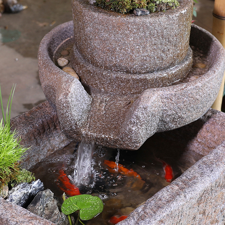 中式客厅流水鱼缸喷泉玄关落地水景观石磨摆件民宿水池造景装饰品