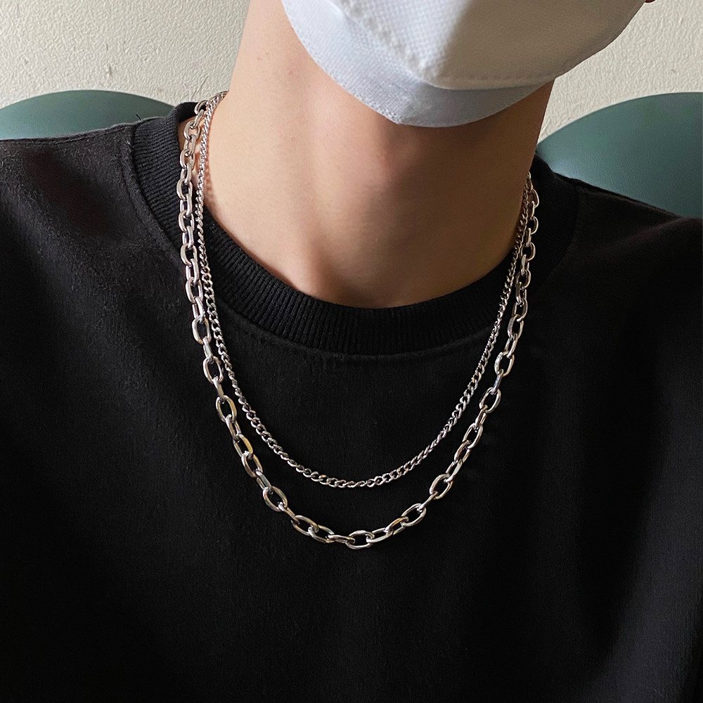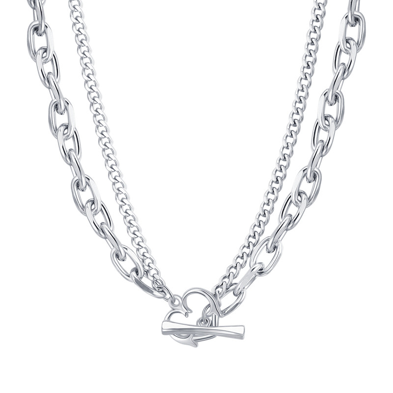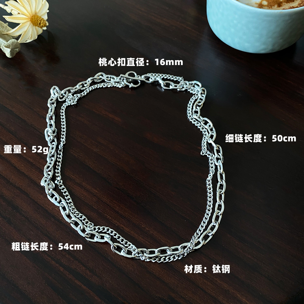 欧美OT扣双层项链高街男潮ins冷淡风嘻哈个性短款配饰锁骨链钛钢