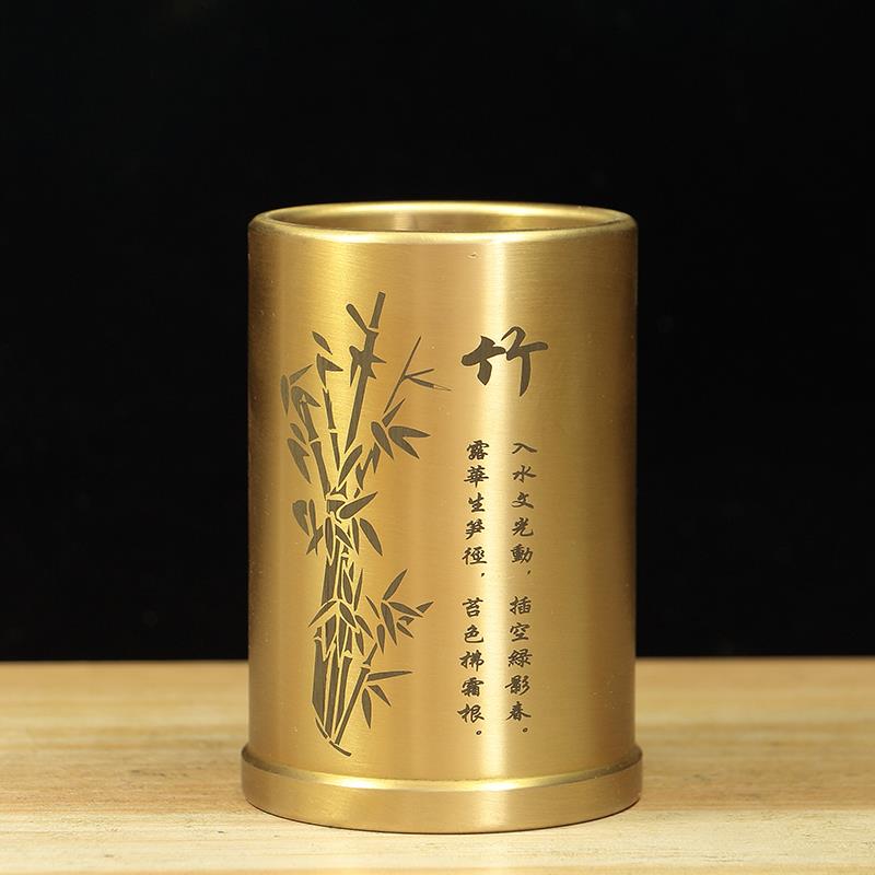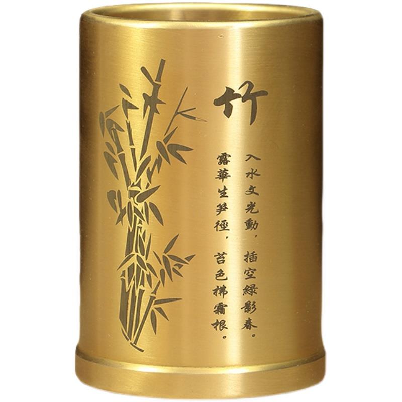 黄铜小号实心笔筒书房桌面家居家用商务工艺礼品茶道办公装饰摆件