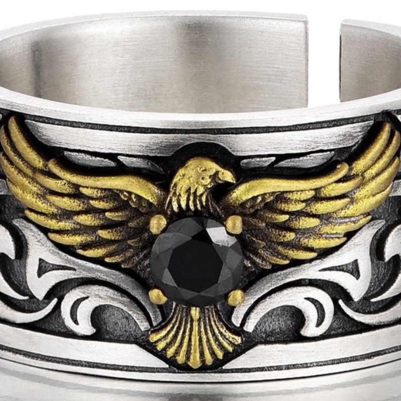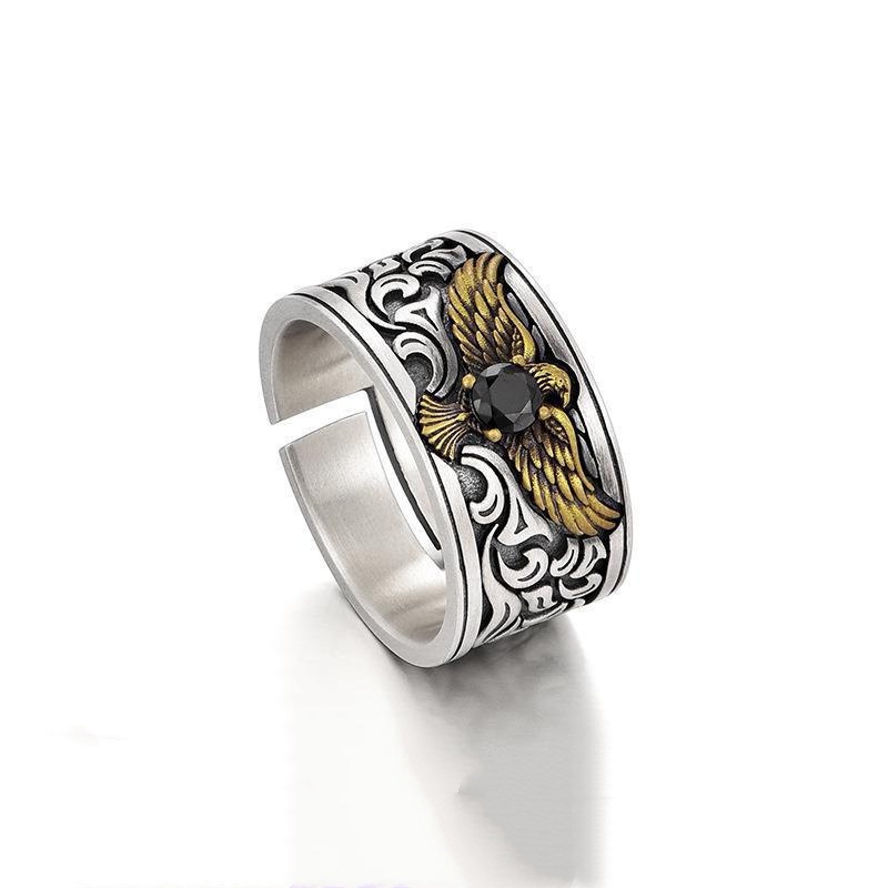 新款老鹰戒指潮个性复古单身小众男生中指指环开口可调节
