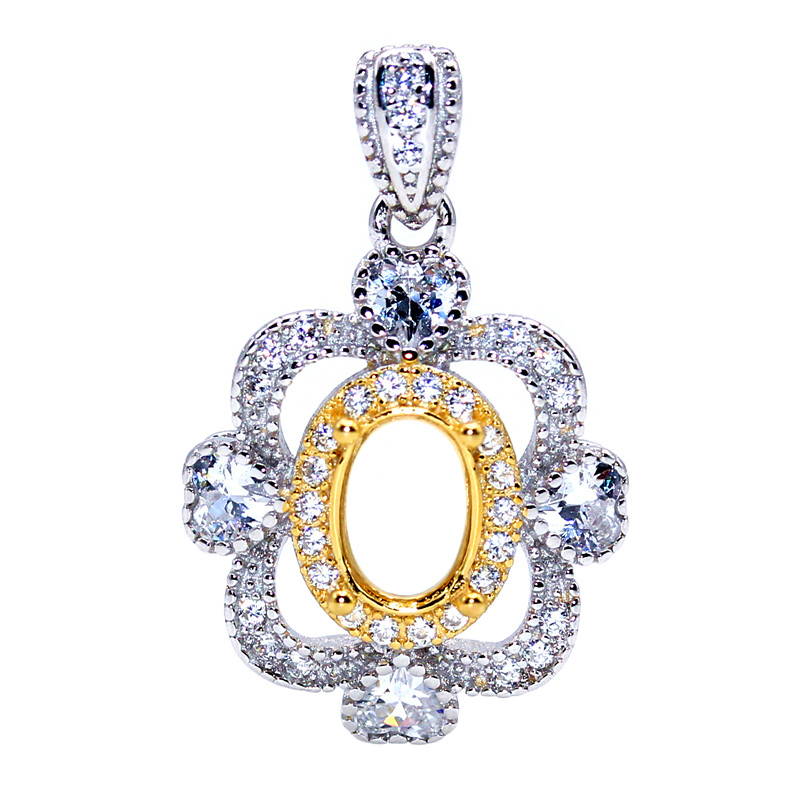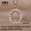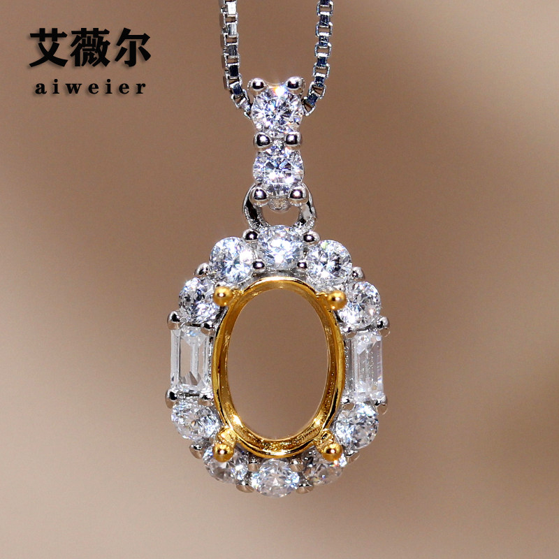 精工S925银饰吊坠空托新款加工镶嵌双色坠托宝石定制18K金5*7mm