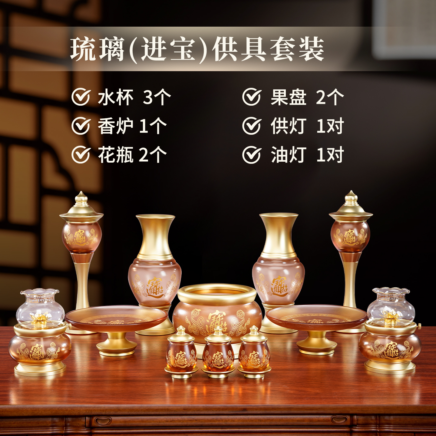 琉璃招财供具套装大全家用供奉财神爷香炉供果盘油灯供灯花瓶摆件