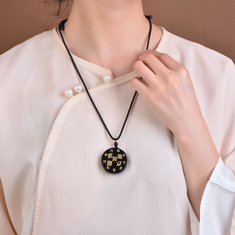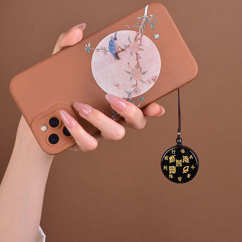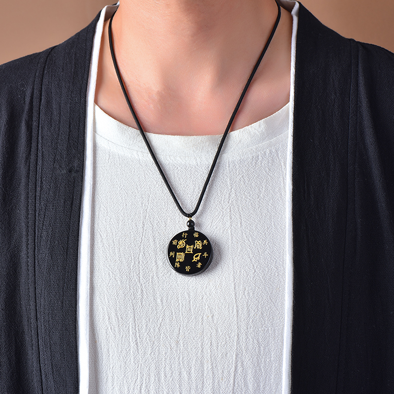黑曜石五岳真形图吊坠五行补壬水癸水护身符钥匙扣九字真言手机链