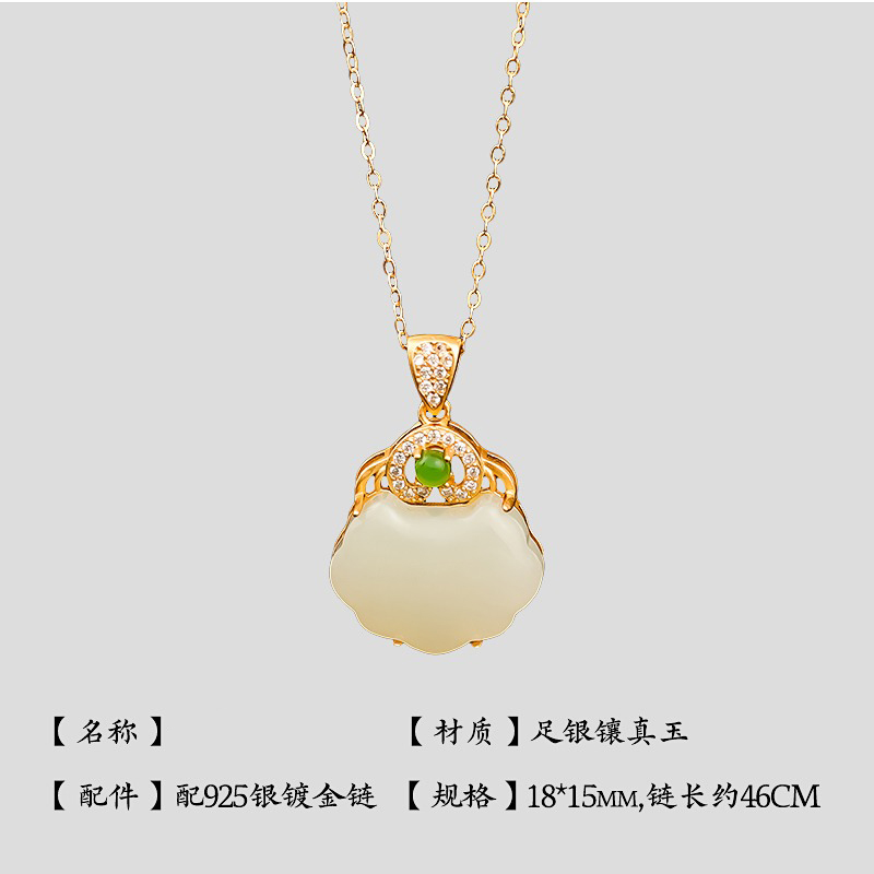 速发和田玉如意锁长命锁平安锁银镶玉吊坠夏项链挂件锁骨链饰品礼