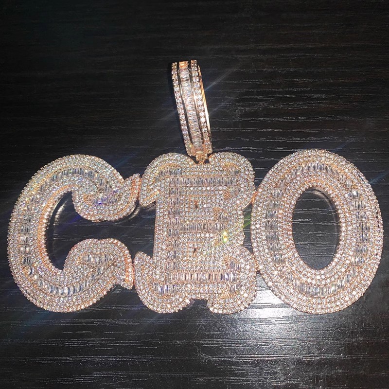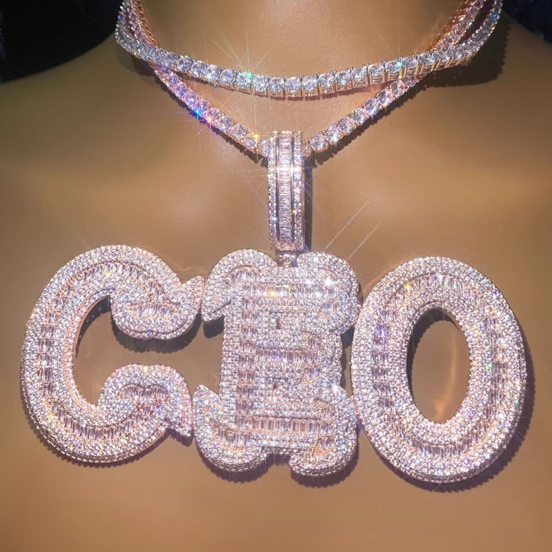 定制款满钻大号字母吊坠锆石欧美嘻哈项链男士说唱hiphop潮流配饰