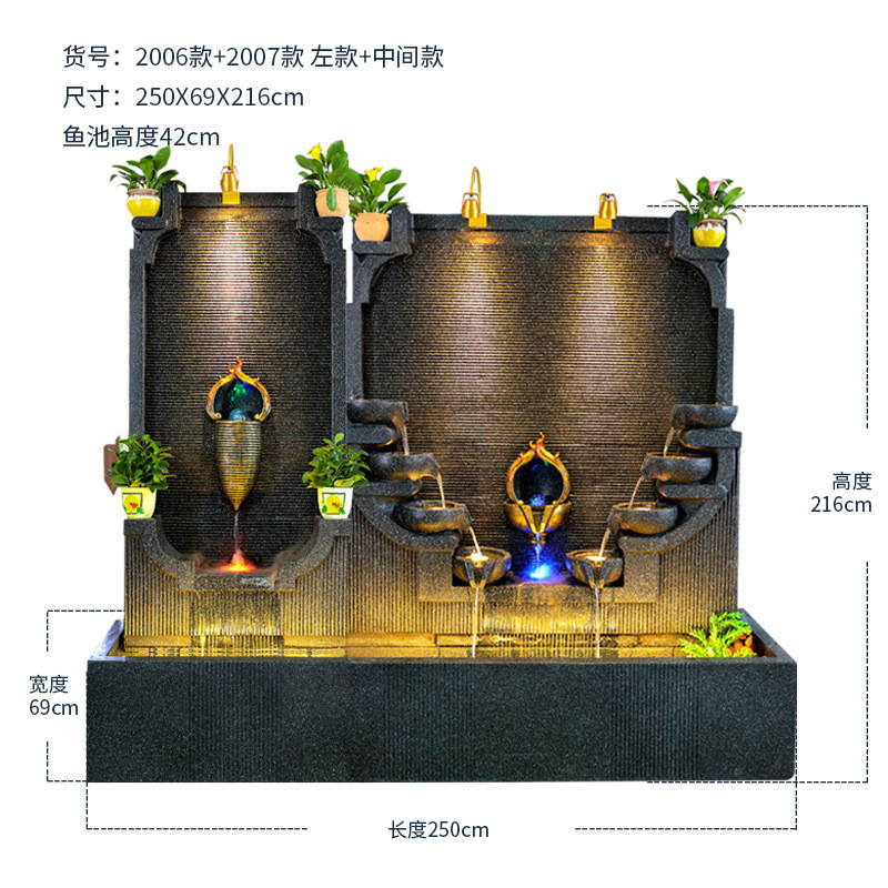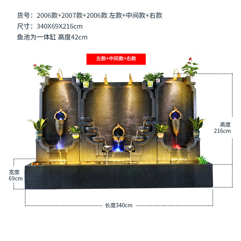 欧式鱼池水幕墙流水墙喷泉酒店别墅大型庭院造景公司招财装饰摆件