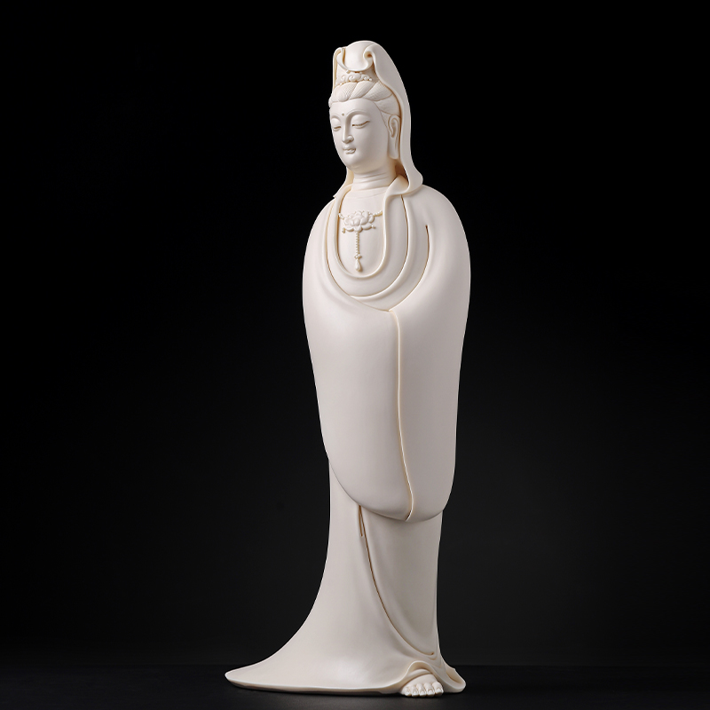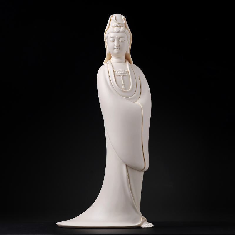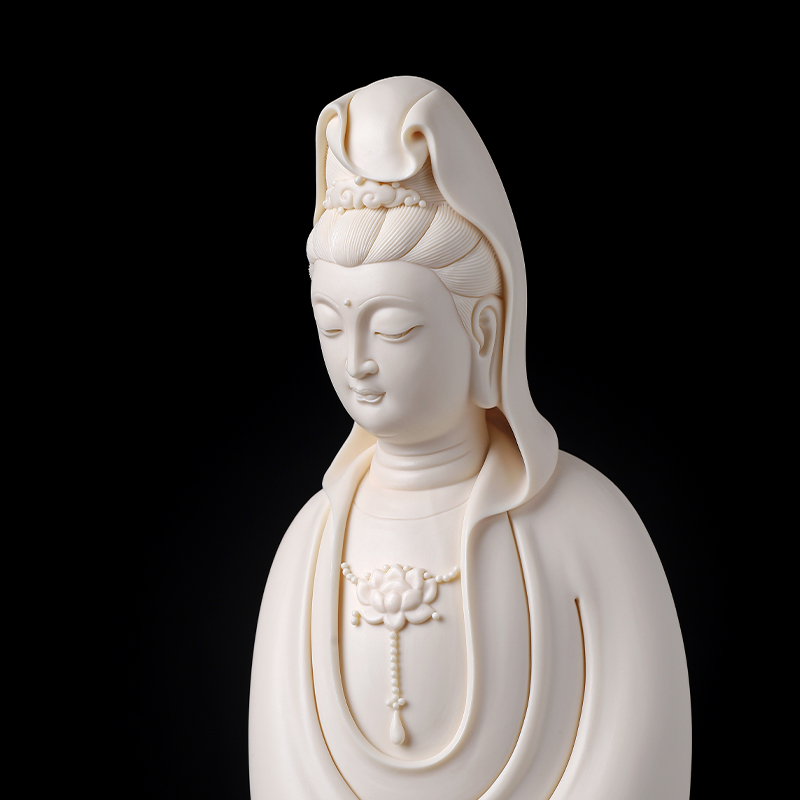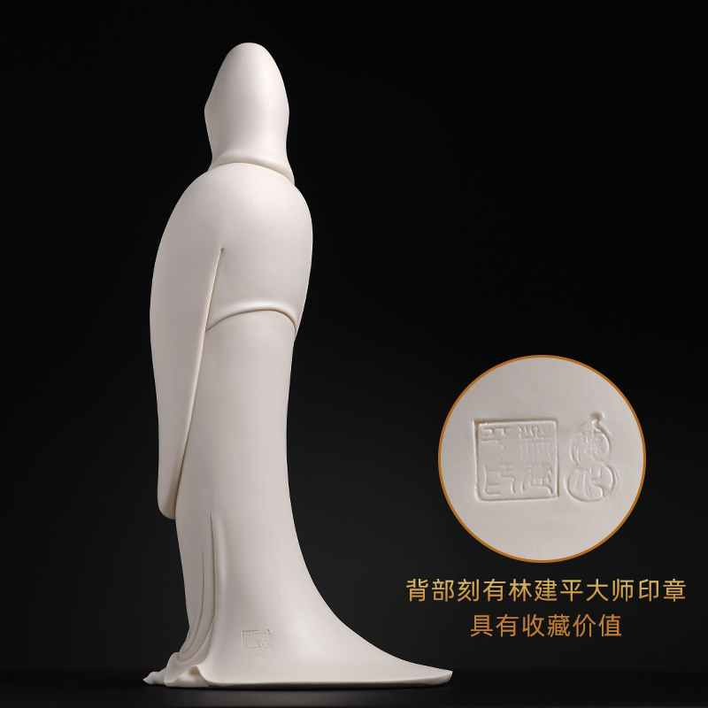 东方泥土《禅韵观音》省级大师林建平艺术作品猛犸牙黄陶瓷收藏品