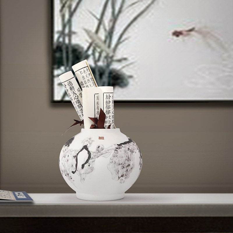 中式古典水墨陶瓷储物罐卷轴组合摆件样板间书房书柜茶室软装饰品