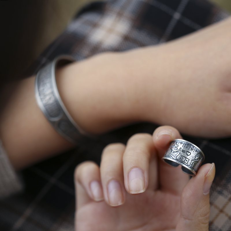 纯银开口戒指古埃及文创壁画阿努比斯求爱舔狗送女友生日告白礼物