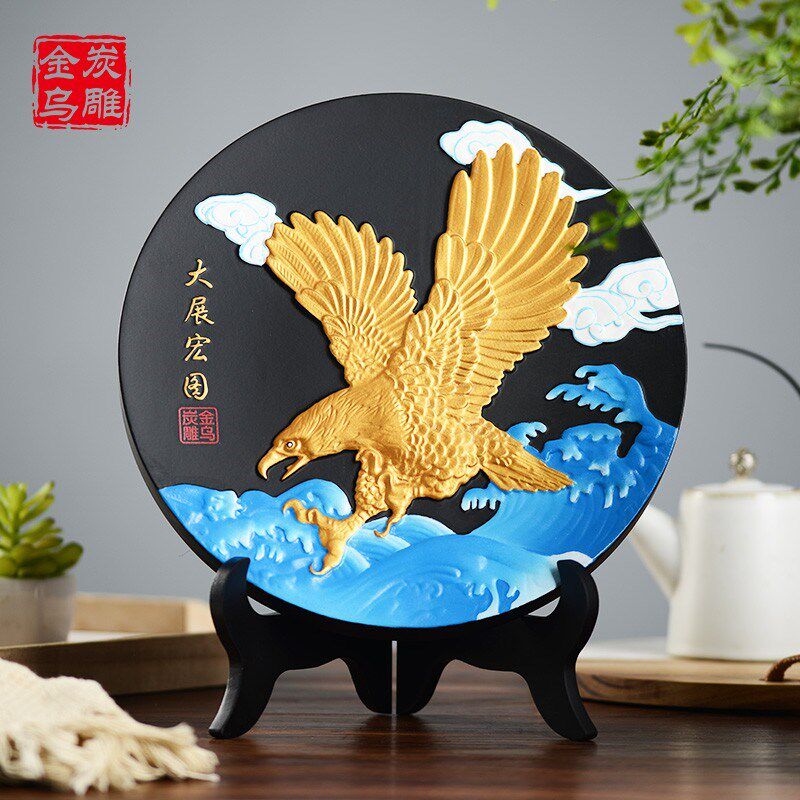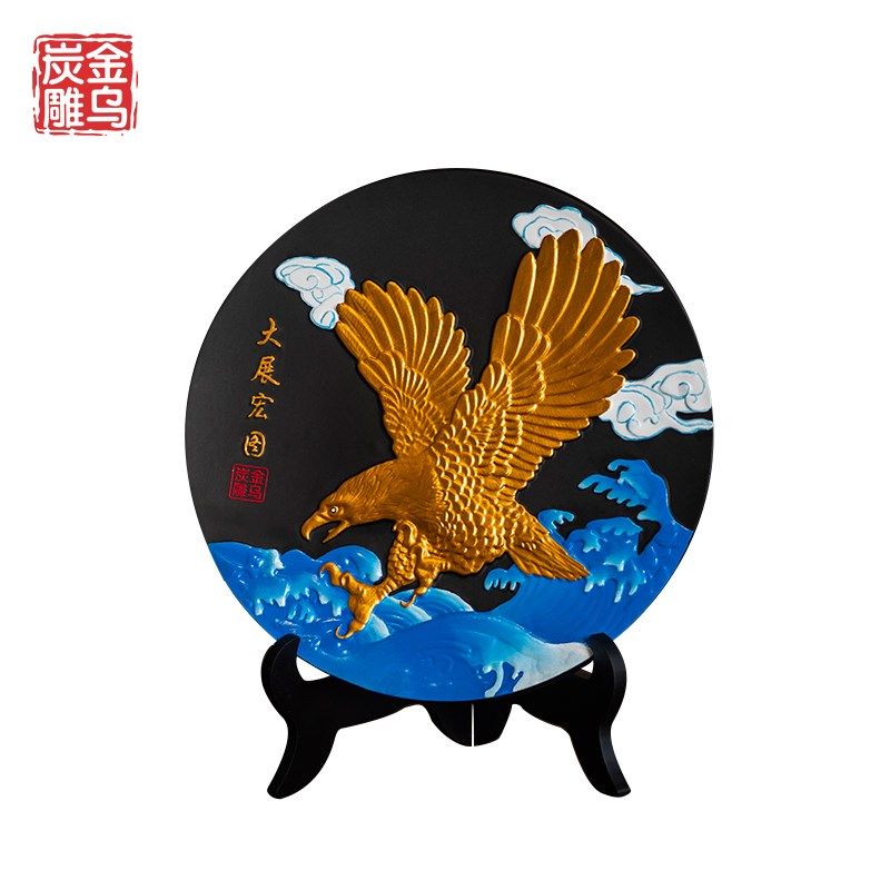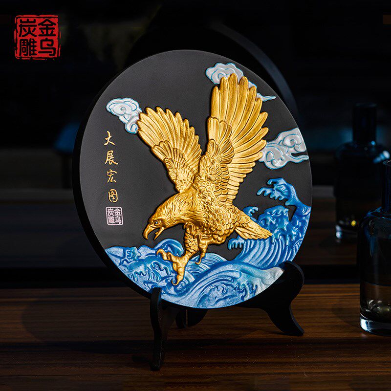 优选金乌炭雕大展宏图商务礼品办公室玄关装饰开业送礼活性炭吸附