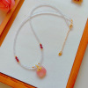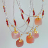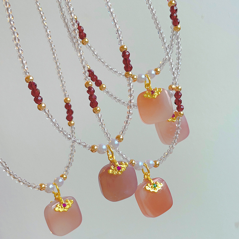 时尚少女心淡水珍珠锆石方糖项链甜美粉色水晶串珠锁骨链小众百搭