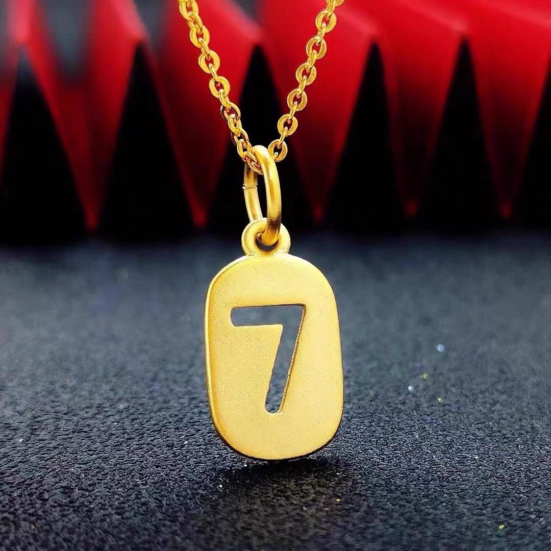幸运数字7黄金吊坠24K镀金爱妻项链轻奢简约冷淡风爱7字牌锁骨链