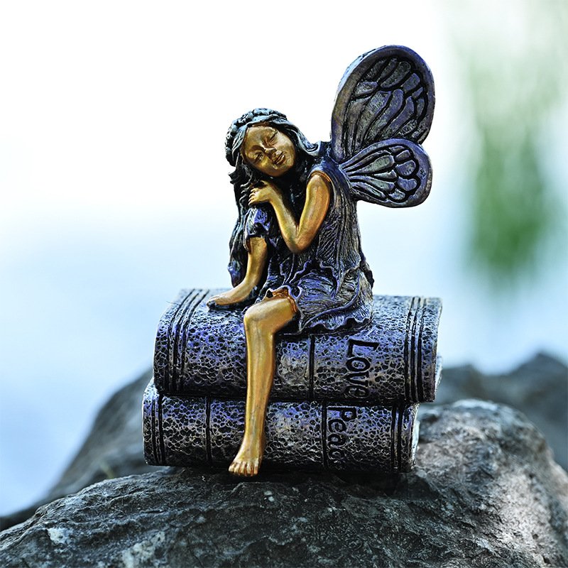古典铜色书本天使女孩树脂摆件创意家居书房书架桌面装饰工艺品