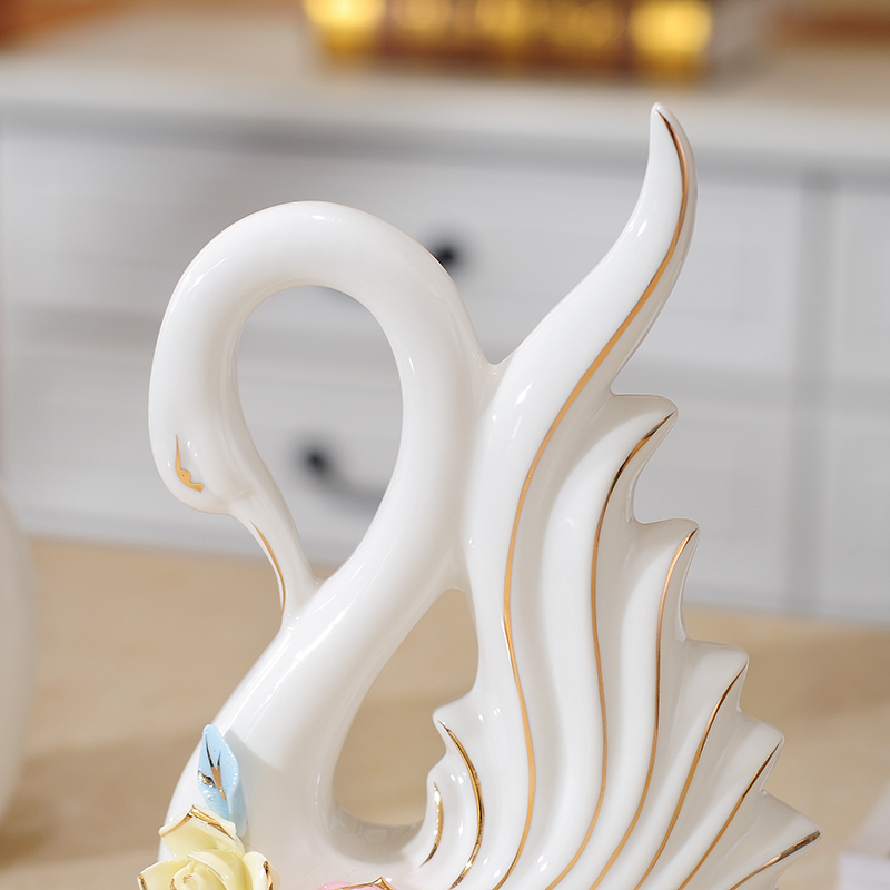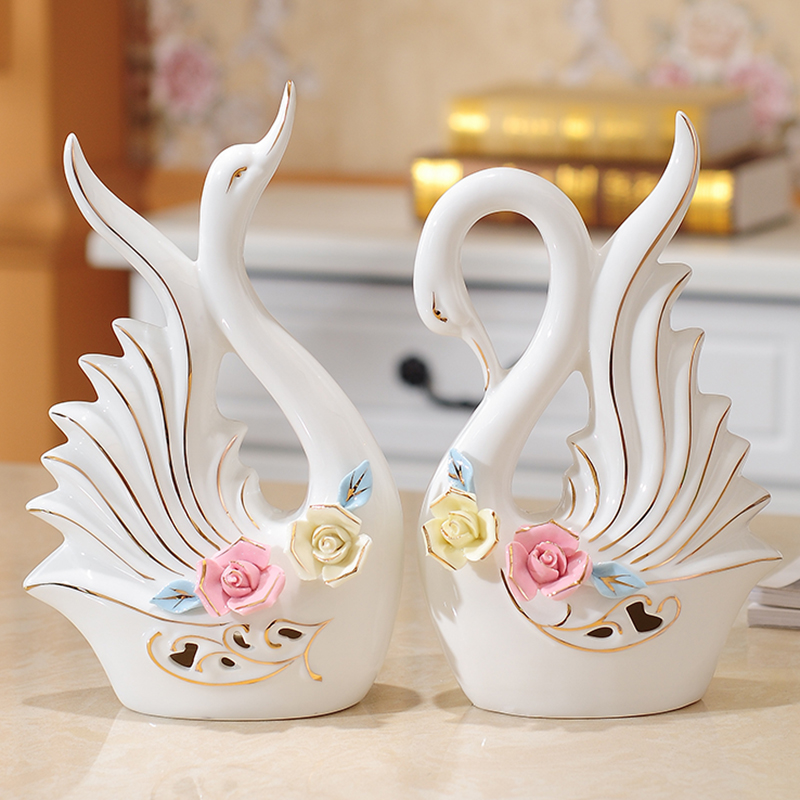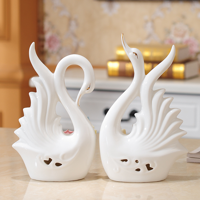 现代简约陶瓷天鹅摆件实用一对家居客厅酒柜电视柜装饰品卧室摆设