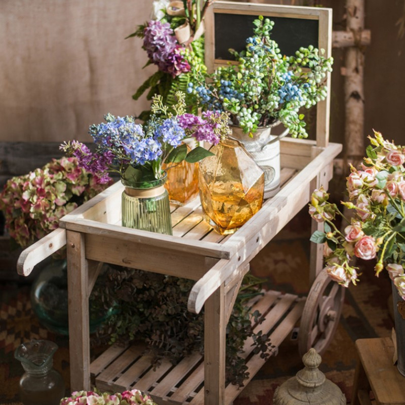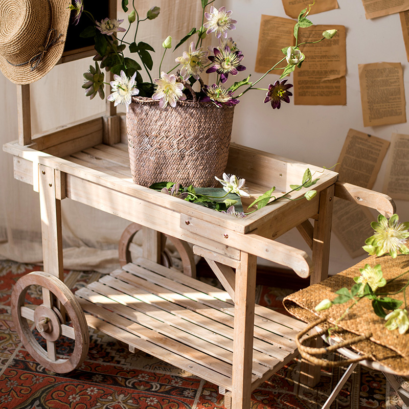 田园乡村复古落地家居推车木质花架花店陈列展架多功能摆件