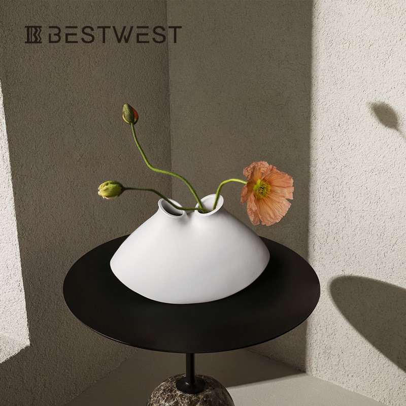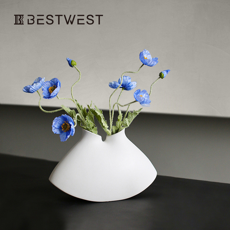 热销博西家居双孔白色扇形不规则陶瓷花瓶摆件家居样板间装饰花器