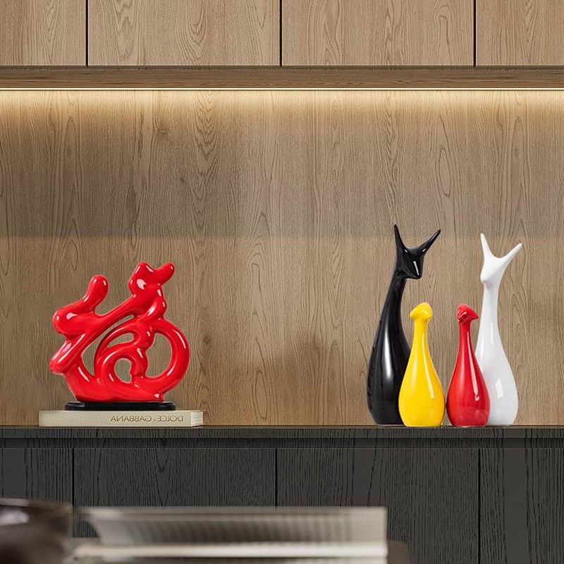 现代陶瓷摆件客厅电视酒柜家居玄关装饰品乔迁之喜红色入户新居