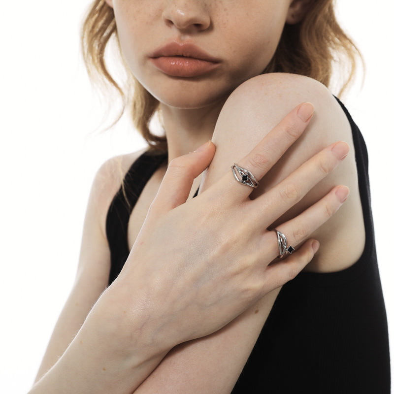 MIRII秘日 枝系列原创小众设计开口叠戴戒指纯银镀白金高级感