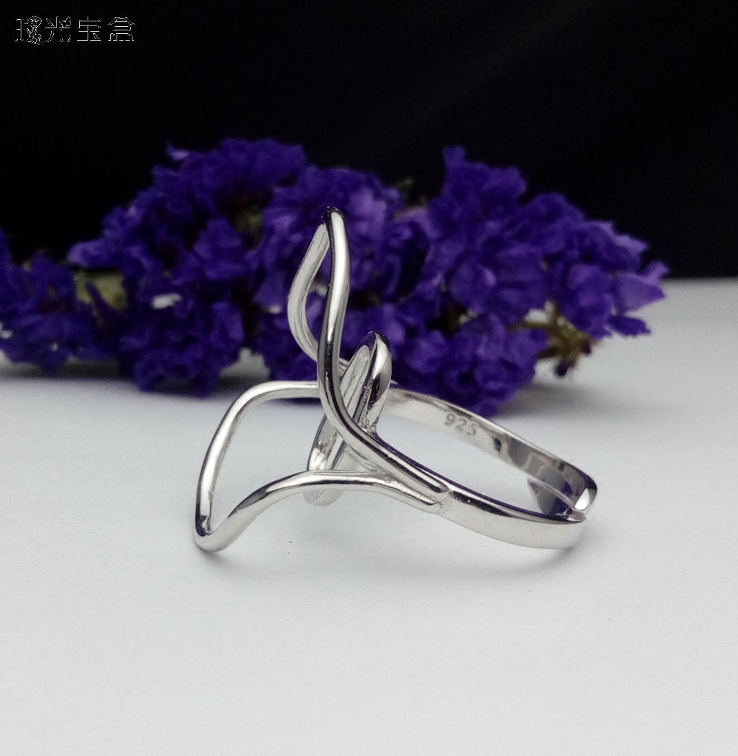 s925纯银镀白金镀黄金素银 欧款梨形 女款 活口 戒指托空托 16*22