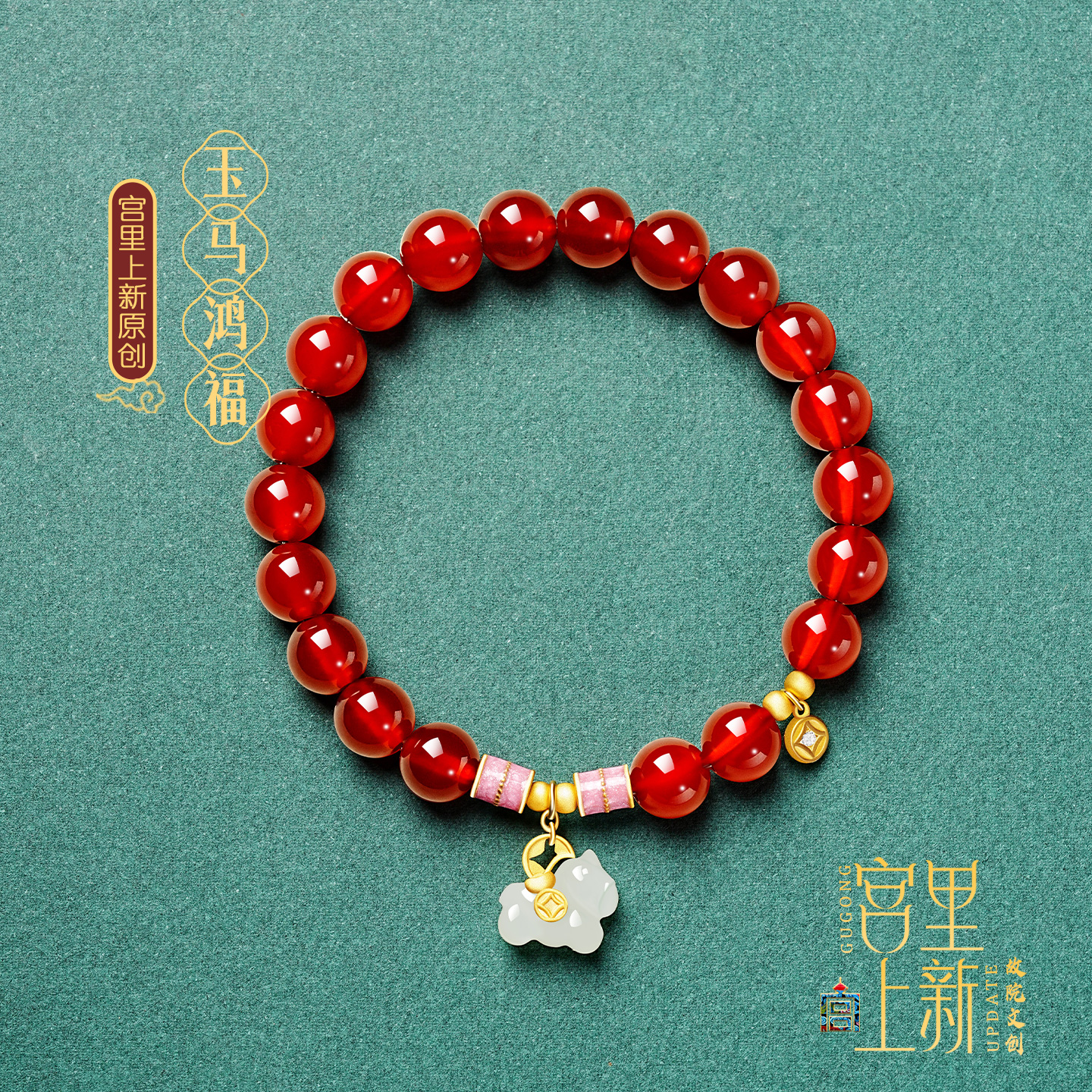 宫里上新红玛瑙手串女款马年本命年手链红色玉石小马手饰生日礼物