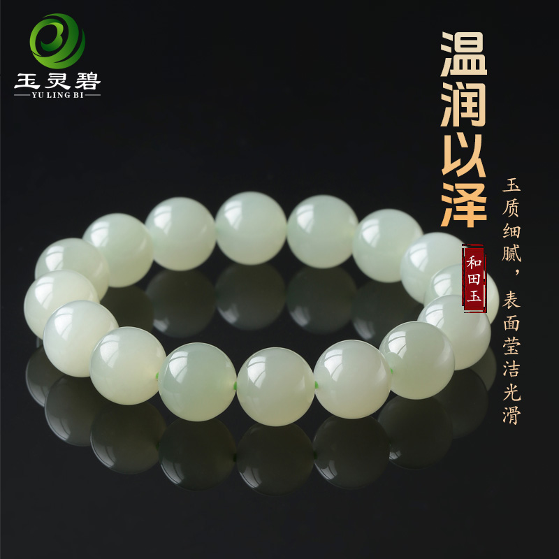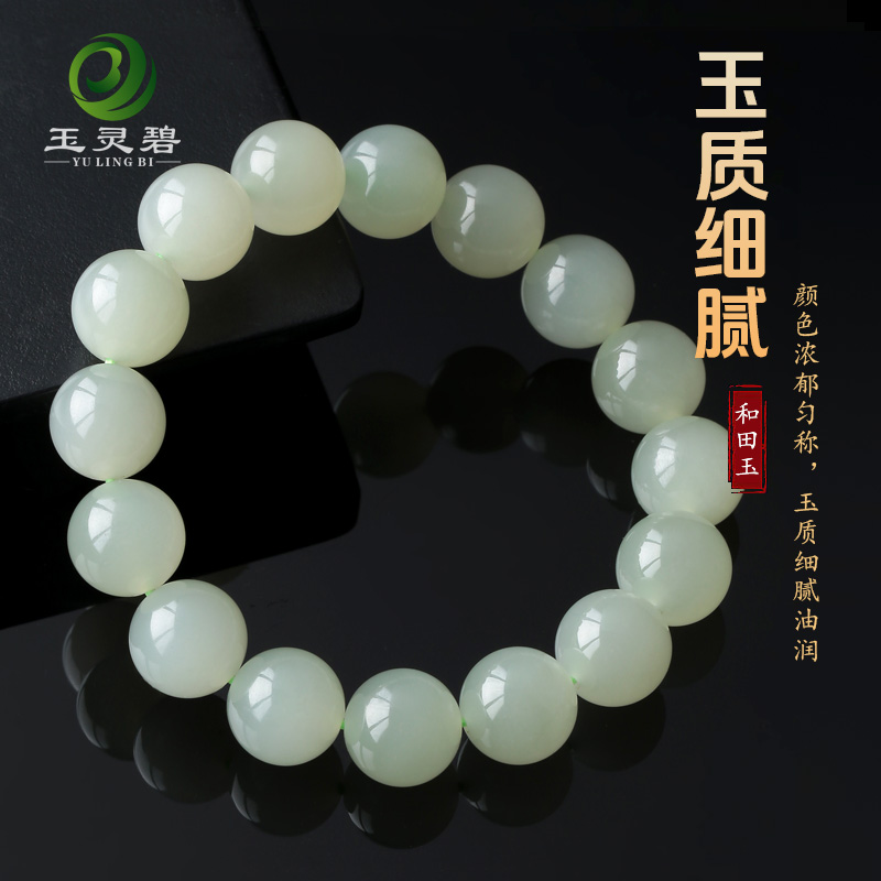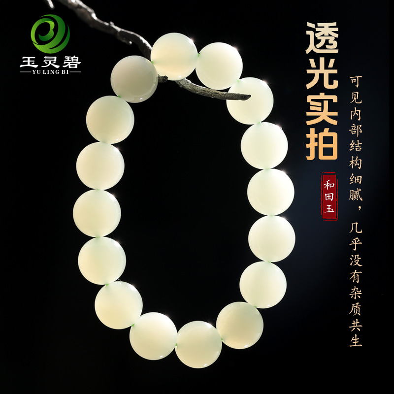 天然和田玉晴水手串老料高冰玉石手链起荧光单圈圆珠高级感玉串珠