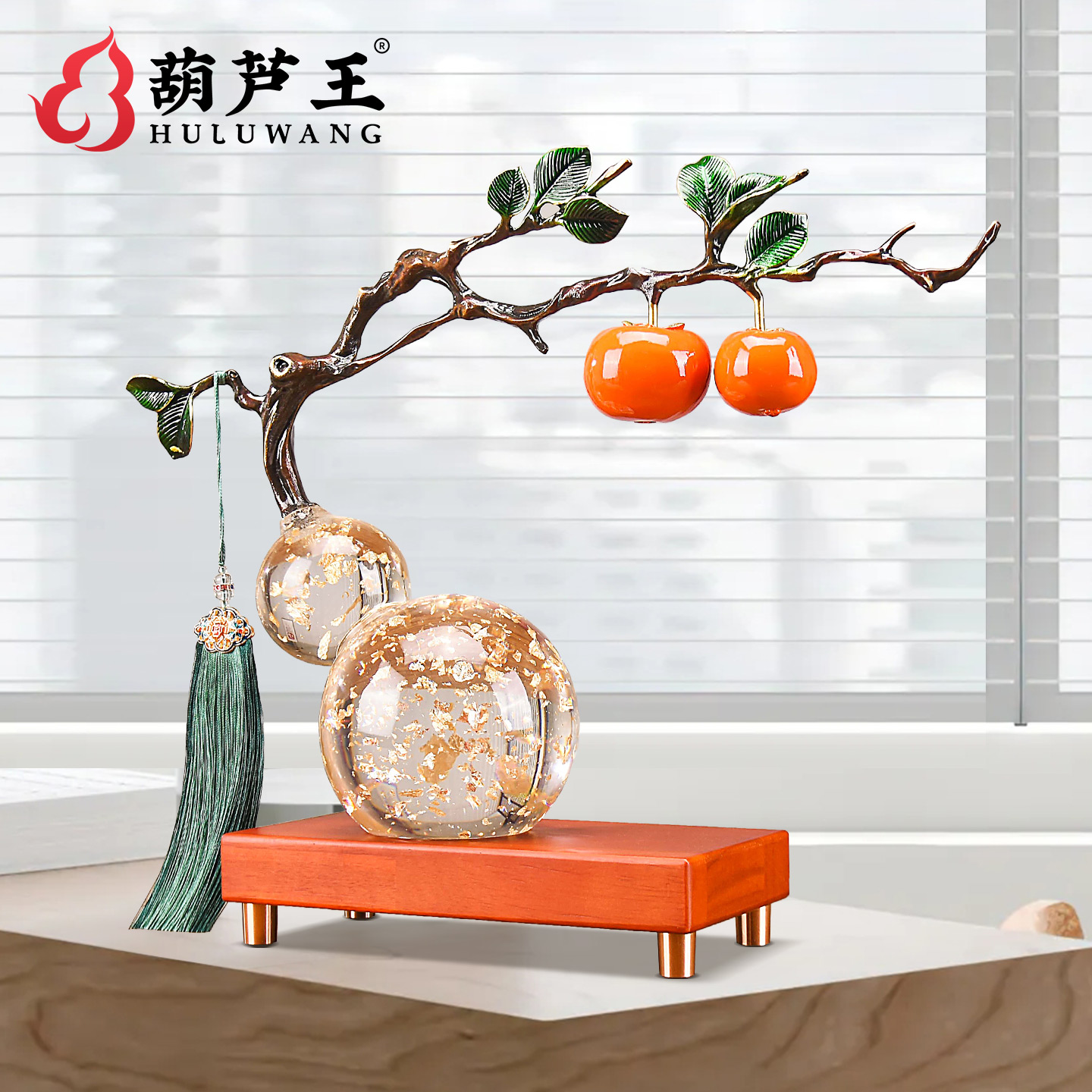 葫芦王柿柿如意水晶葫芦摆件公司前台办公室桌面装饰招财开业礼品
