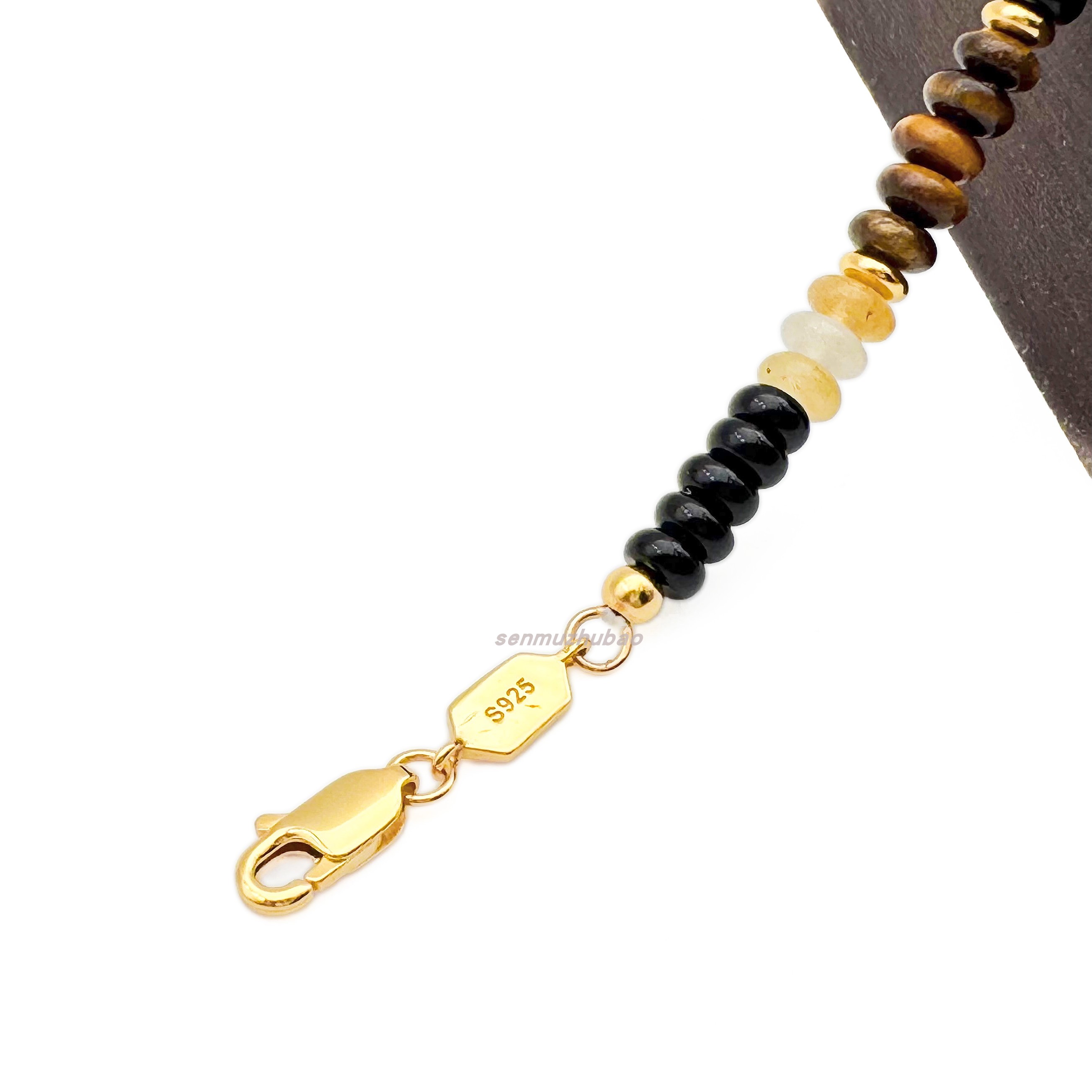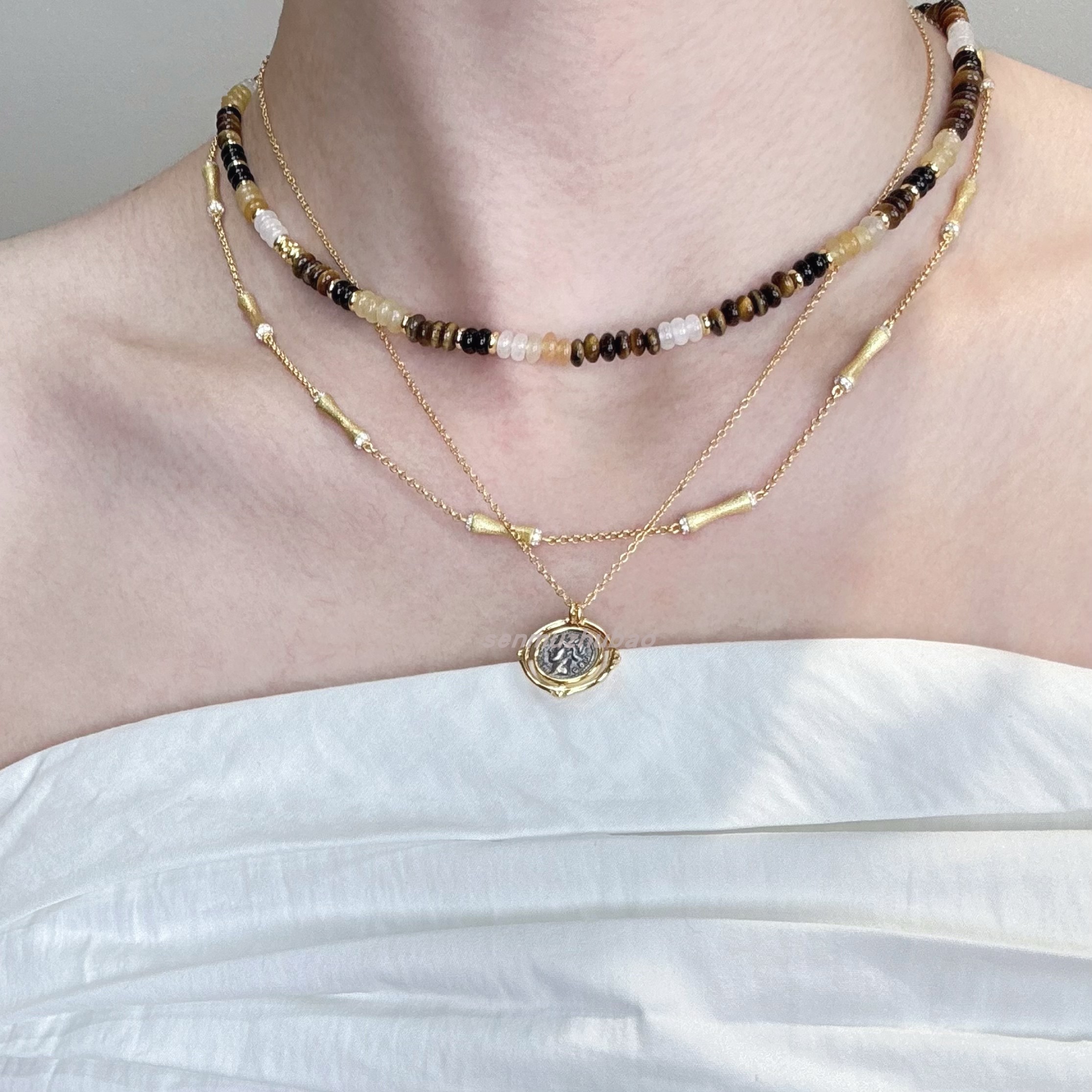 925银镀金欧美风波西米亚风美拉德风天然虎眼彩石串珠项链设计感