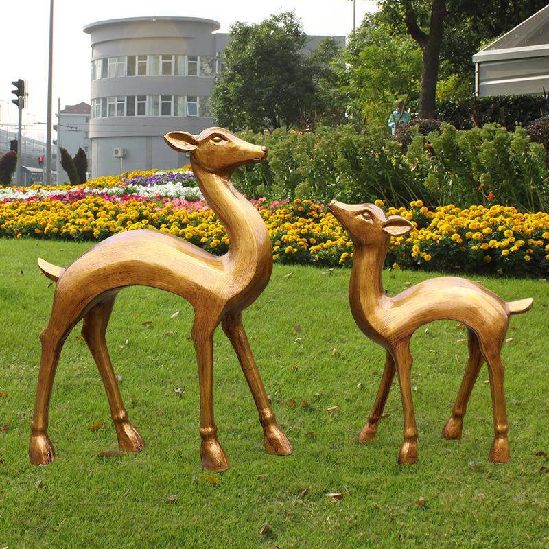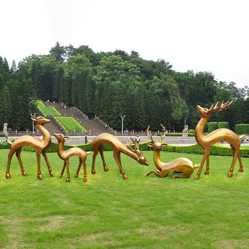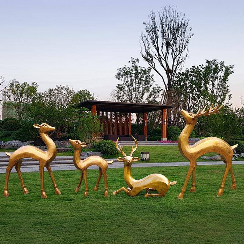 户外园林玻璃钢仿铜抽象梅花鹿仿真动物雕塑商场庭院景观装饰摆件