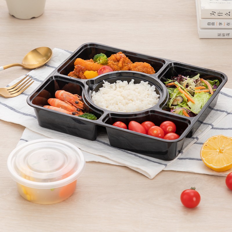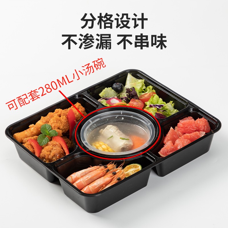 一次性餐盒加厚黑色透明打包盒三格四格五格外卖便当快餐盒带盖