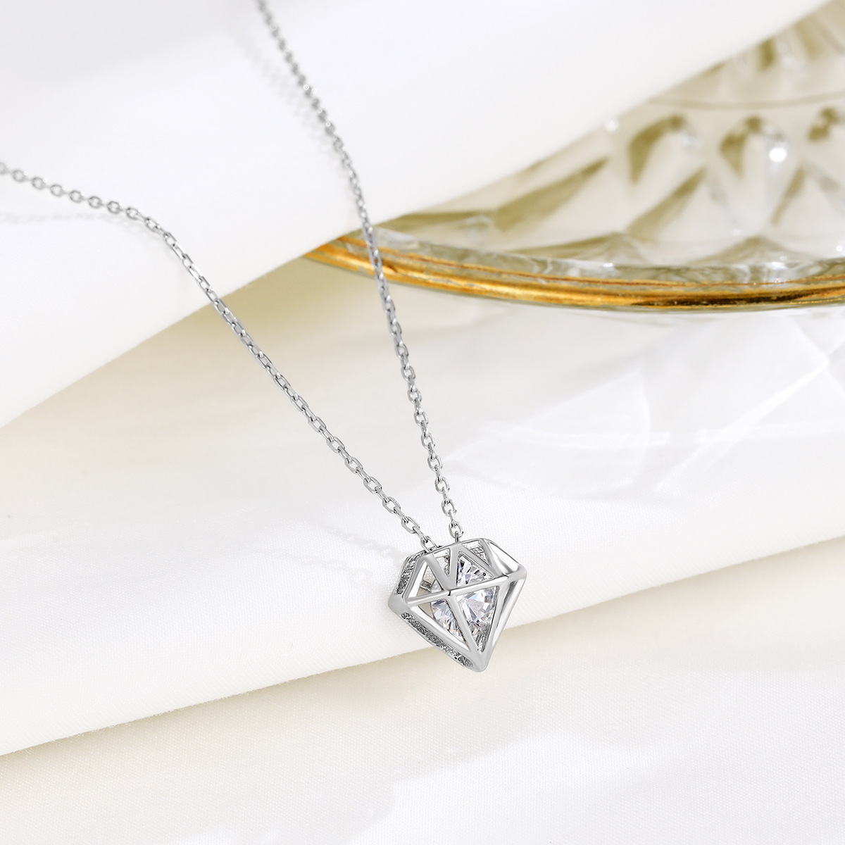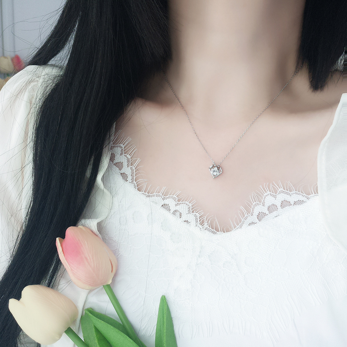 S925纯银超人钻石造型项链ins风韩版小钻锁骨链气质小众夏季饰品