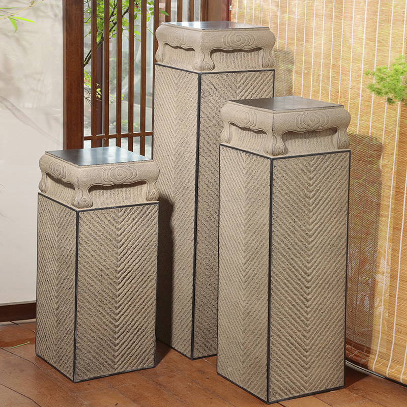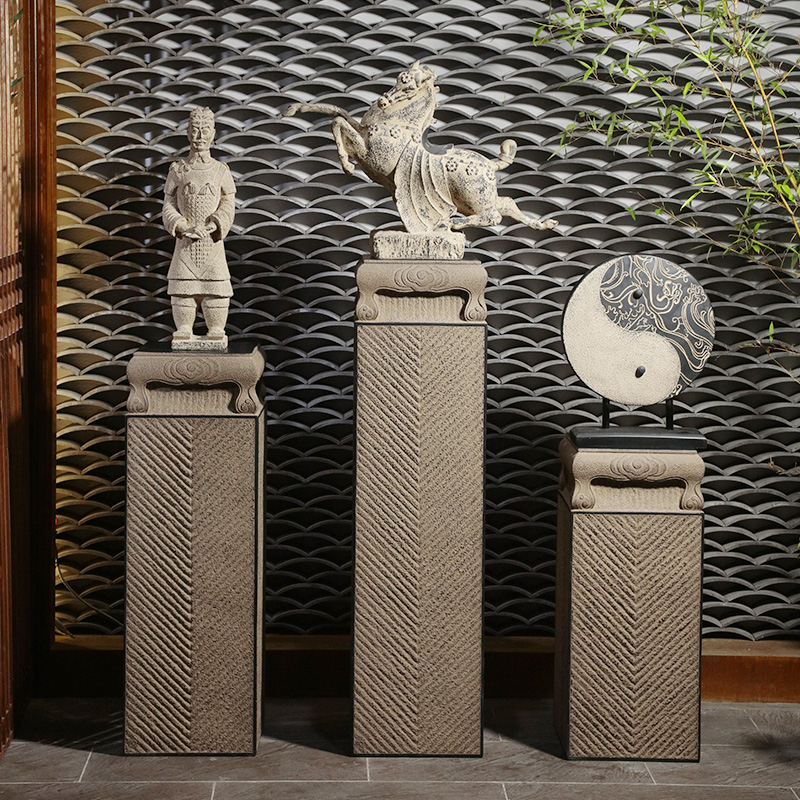 户外庭院花园门口装饰柱子禅意招财摆件新中式室内仿石展示柱底座