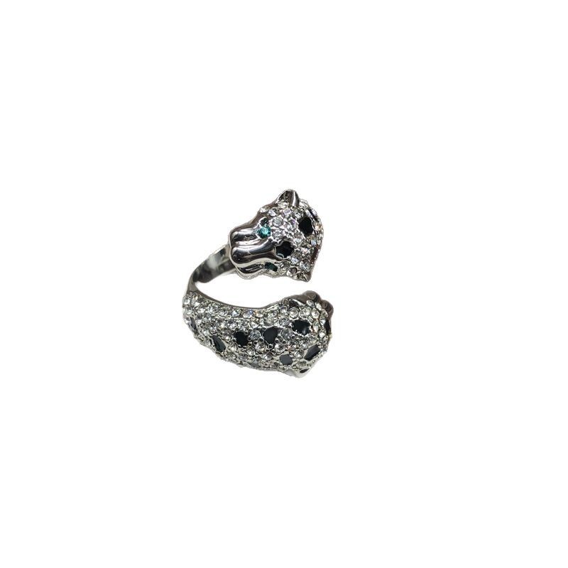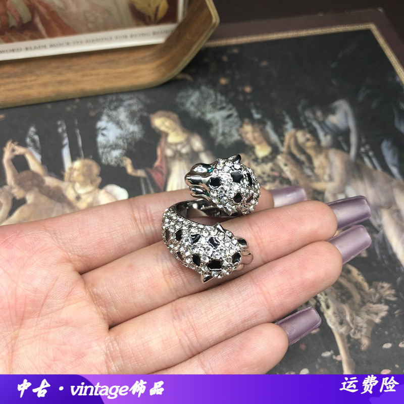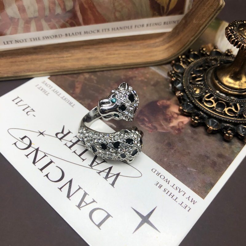 设计感时尚精致豹子造型铜材质戒指密镶满钻珐琅釉复古风创意指环