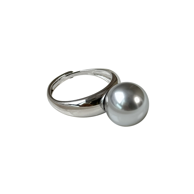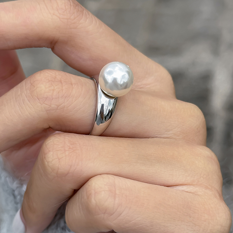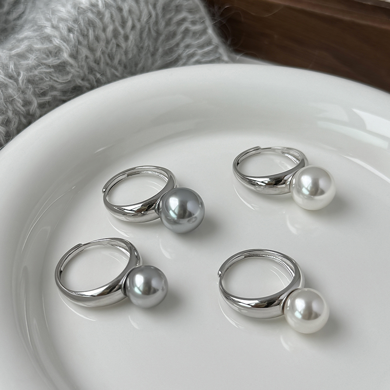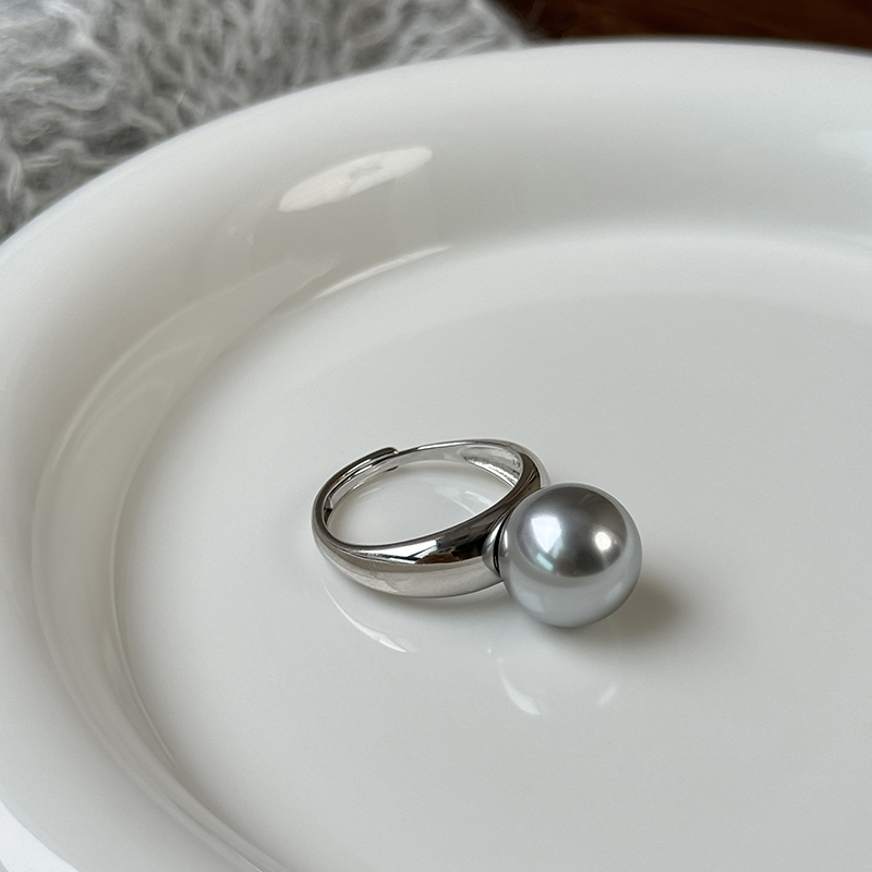 方糖家 经典大颗珍珠S925纯银光面简洁珍珠戒指可调节高级食指戒