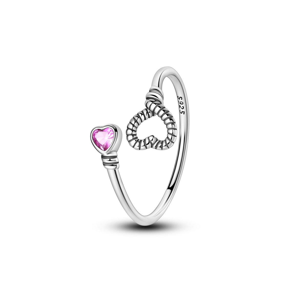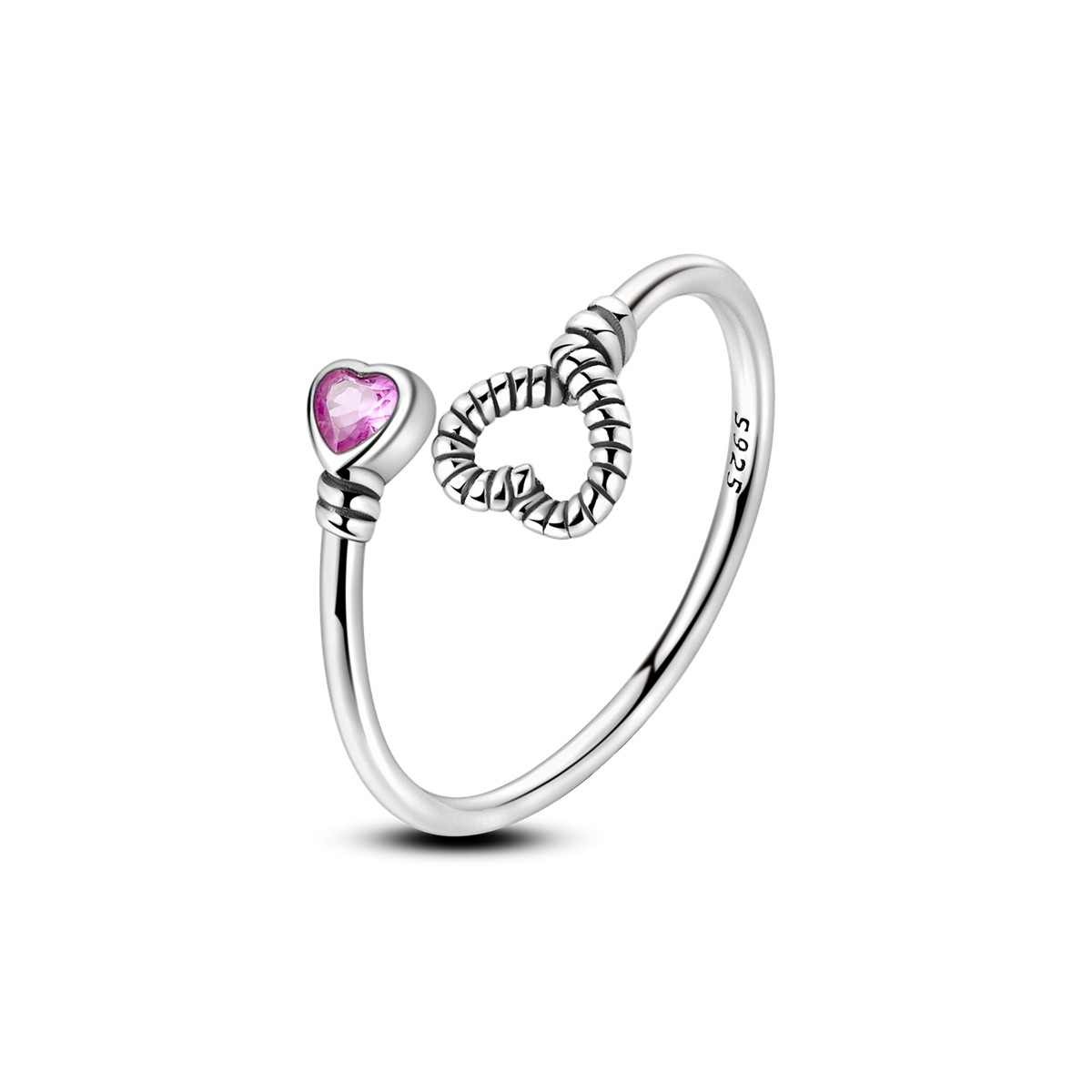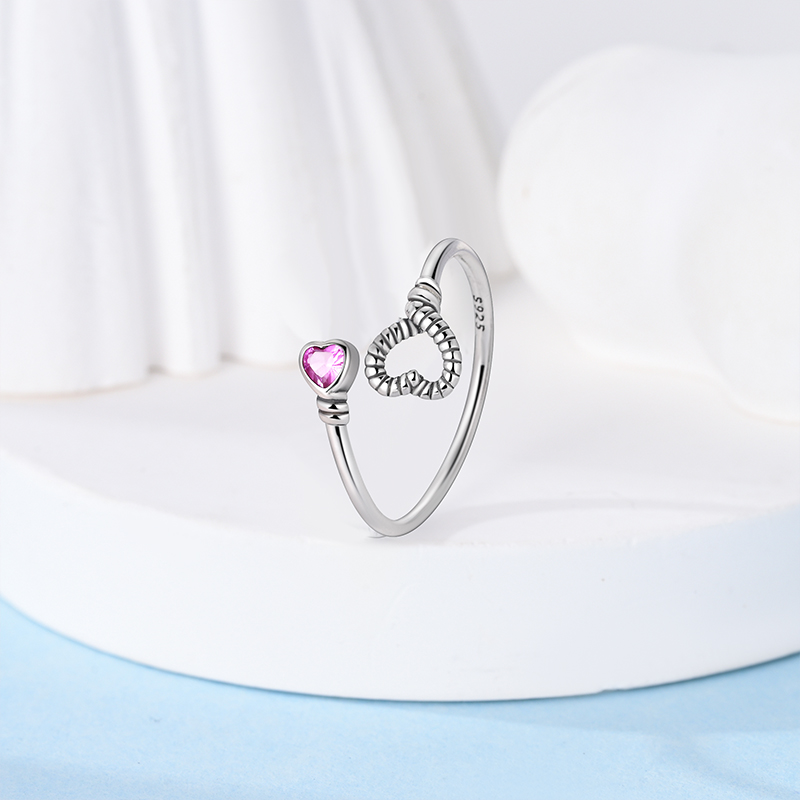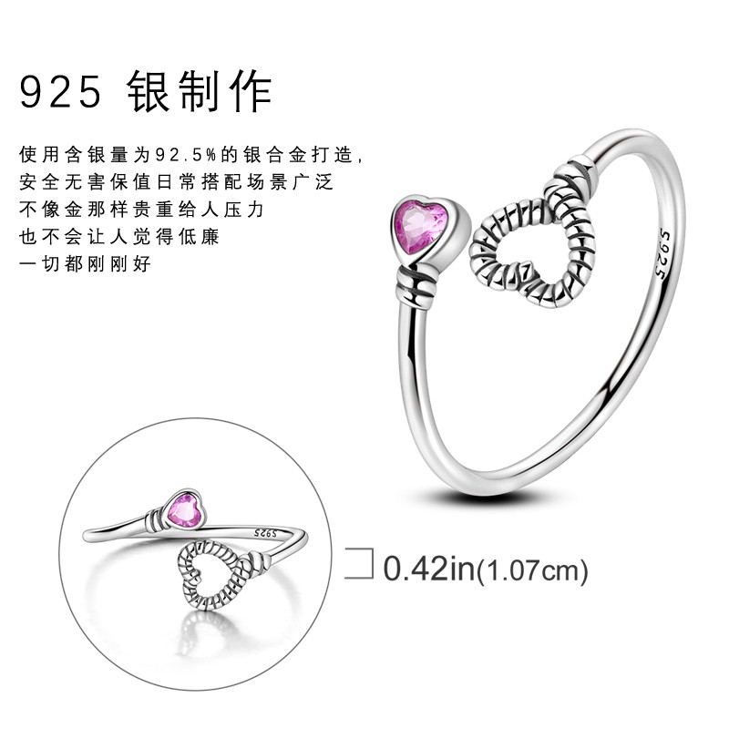 MYBEBOA/美缤宝 纯银S925 爱心拥抱粉色锆石开口可调节女戒指爱情